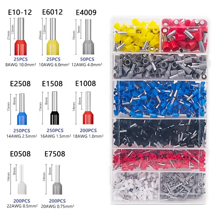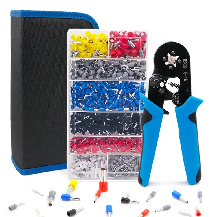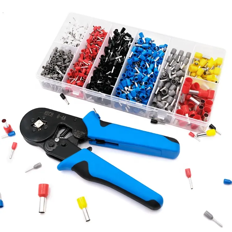 1200PCS Cord End Bootlace Ferrule Terminals Connector Assortment Cable Wire Self-Adjusting Ratchet Hand Tool Crimping Pliers Kit