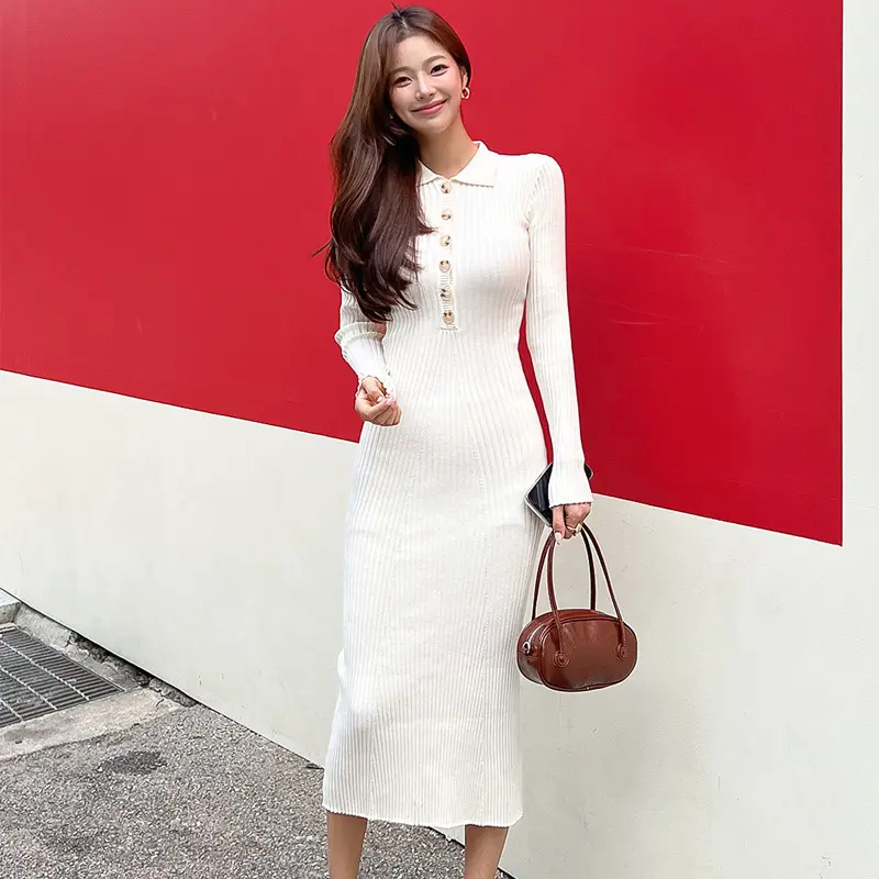 2023 Autumn Winter New Style Long Sleeve Slim Fit Knitted Sweater Dress