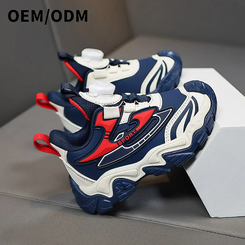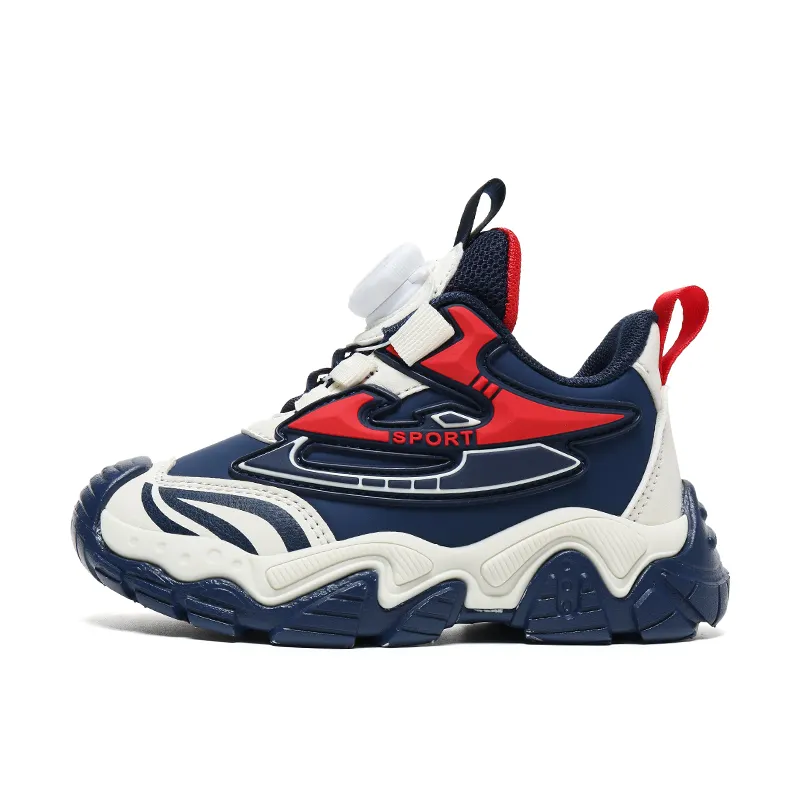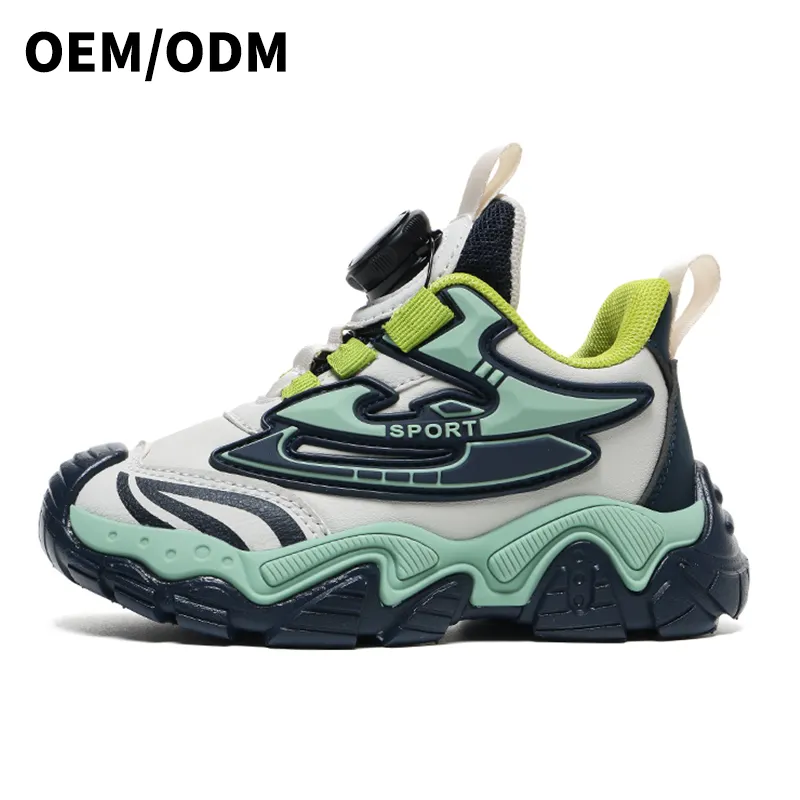 2024 Spring and Autumn New Leather Waterproof Rotary Button Casual Soft Soled Children's Sports Shoes