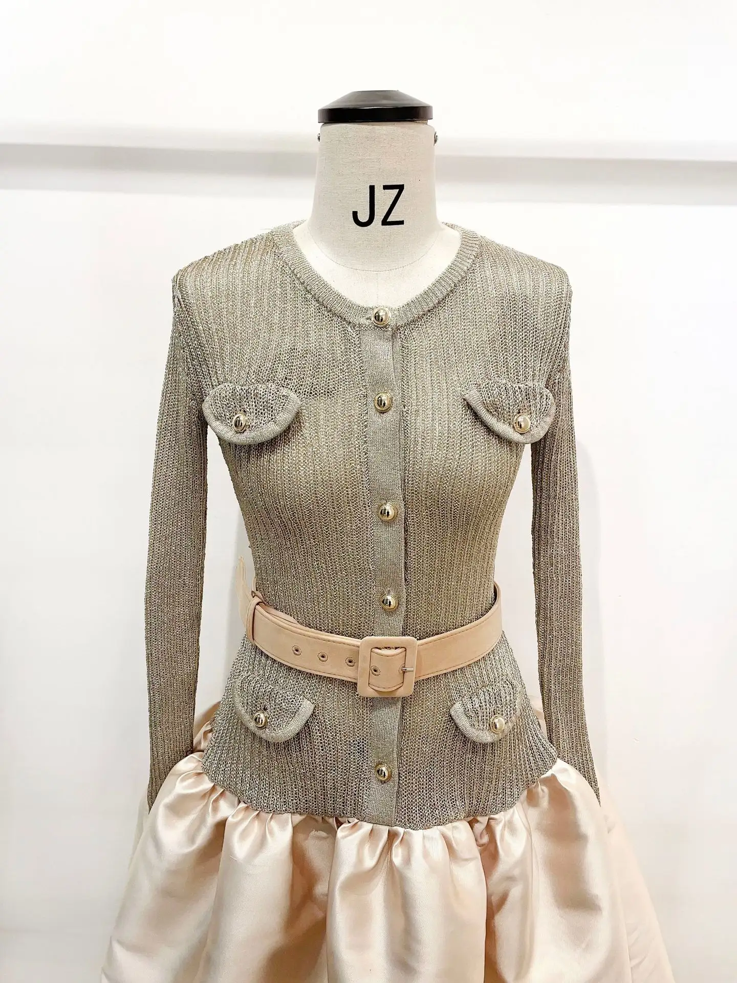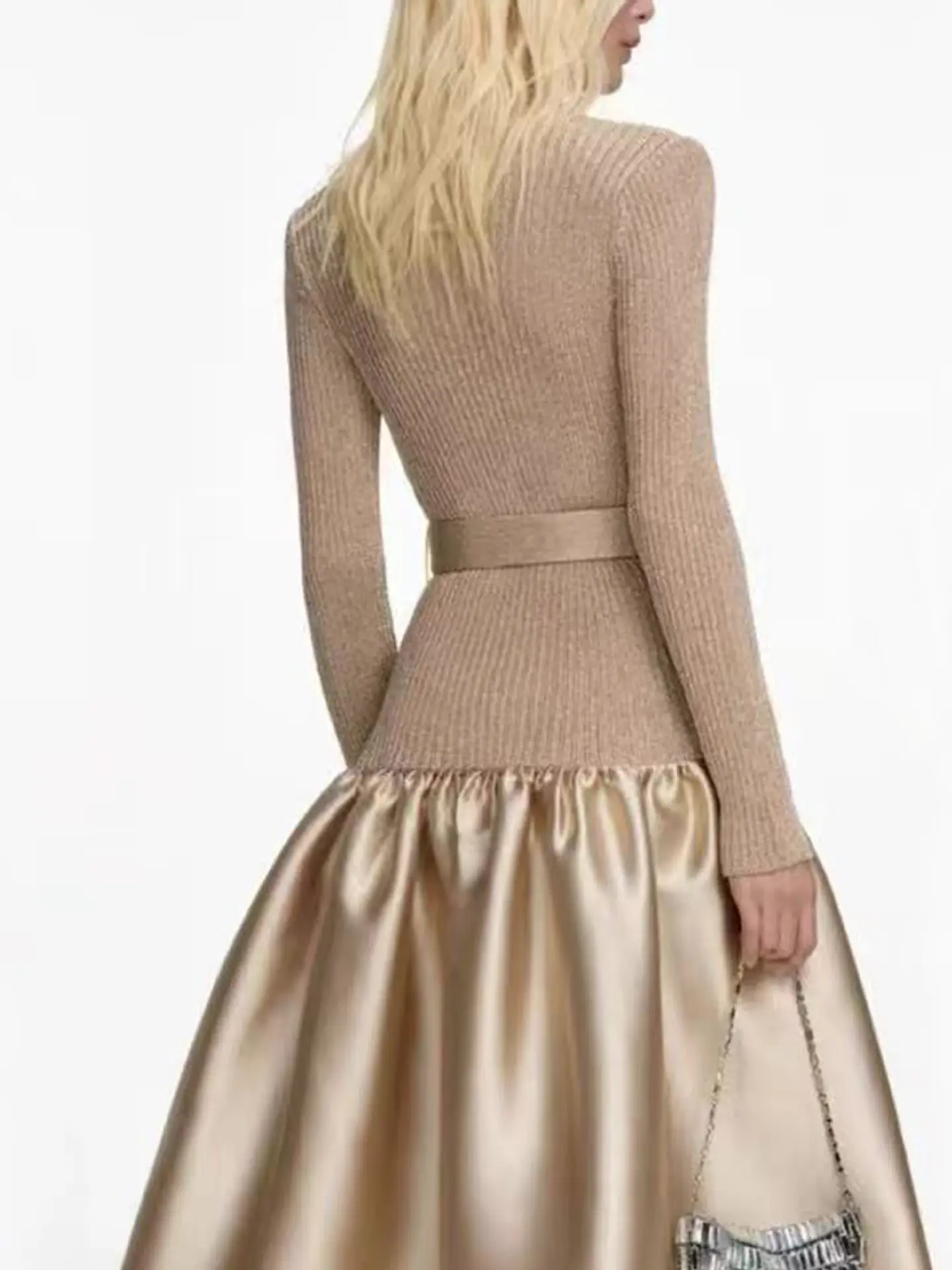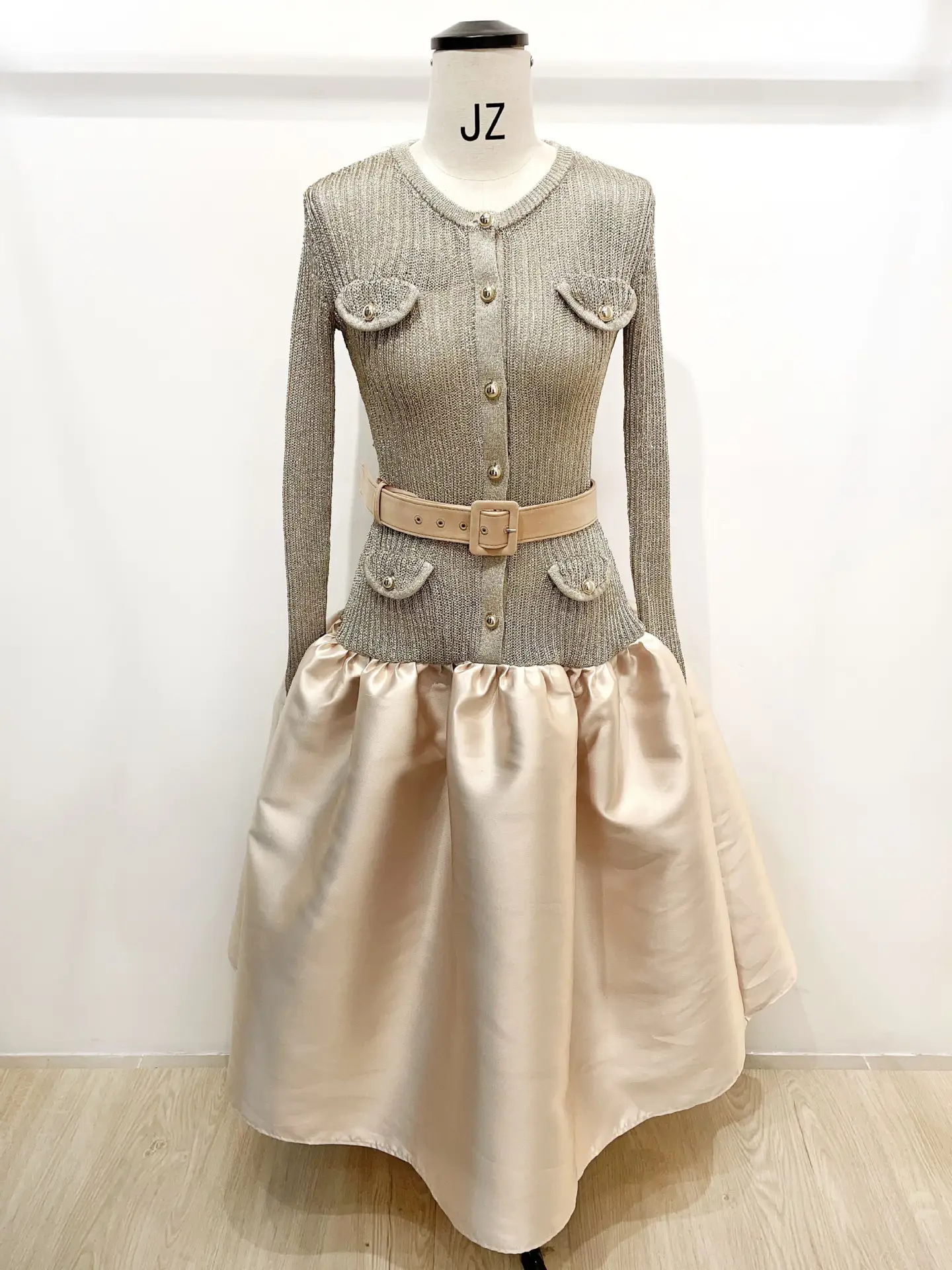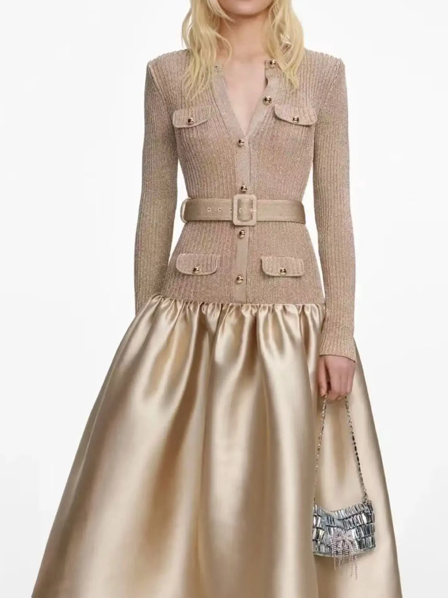 2026 Spring New Arrival Elegant Dress Women Long A-line Dress Slim Fit Patchwork Puff Skirt with Belt