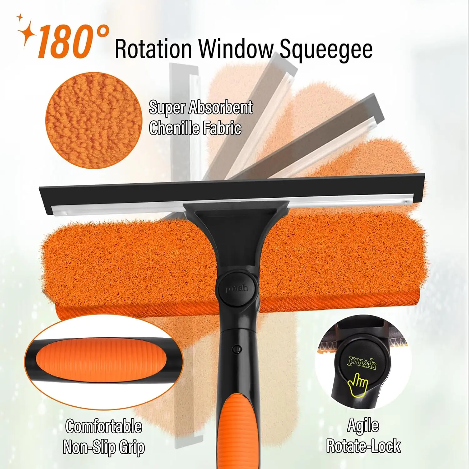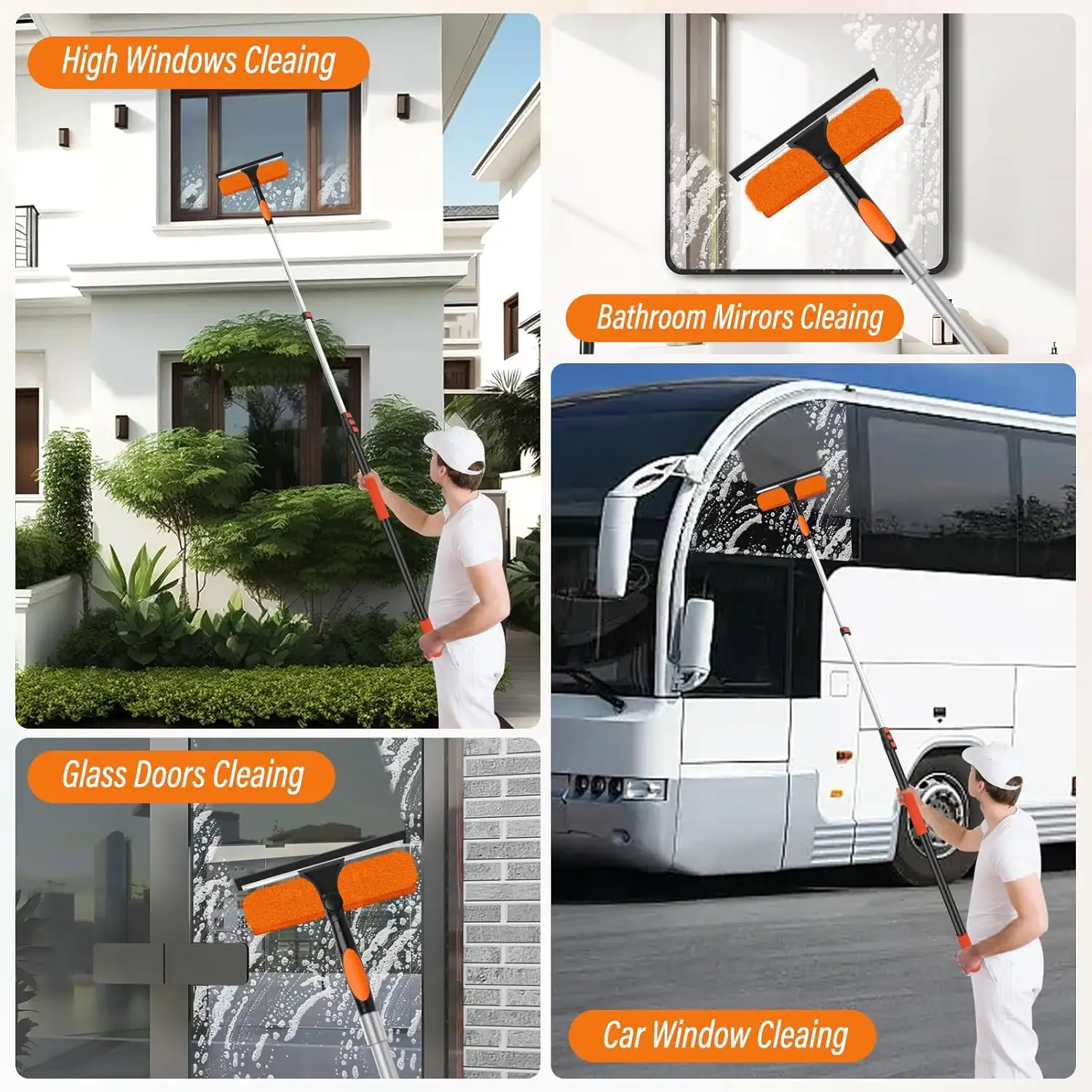 24FT Professional Window Cleaning Kit 2-in-1 Aluminum Telescopic Tool 5-24FT Pole 180° Rotatable Squeegee High Window Cleaning