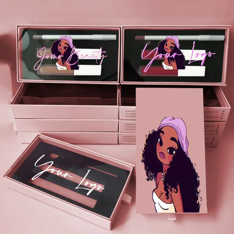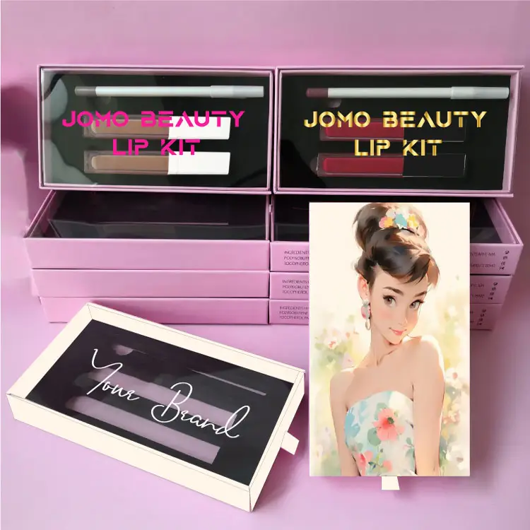 3 in 1 Longlasting Matte Lip Gloss and Lip Liner Pencil Sets Private logo Vegan Cosmetic Kit pink Box
