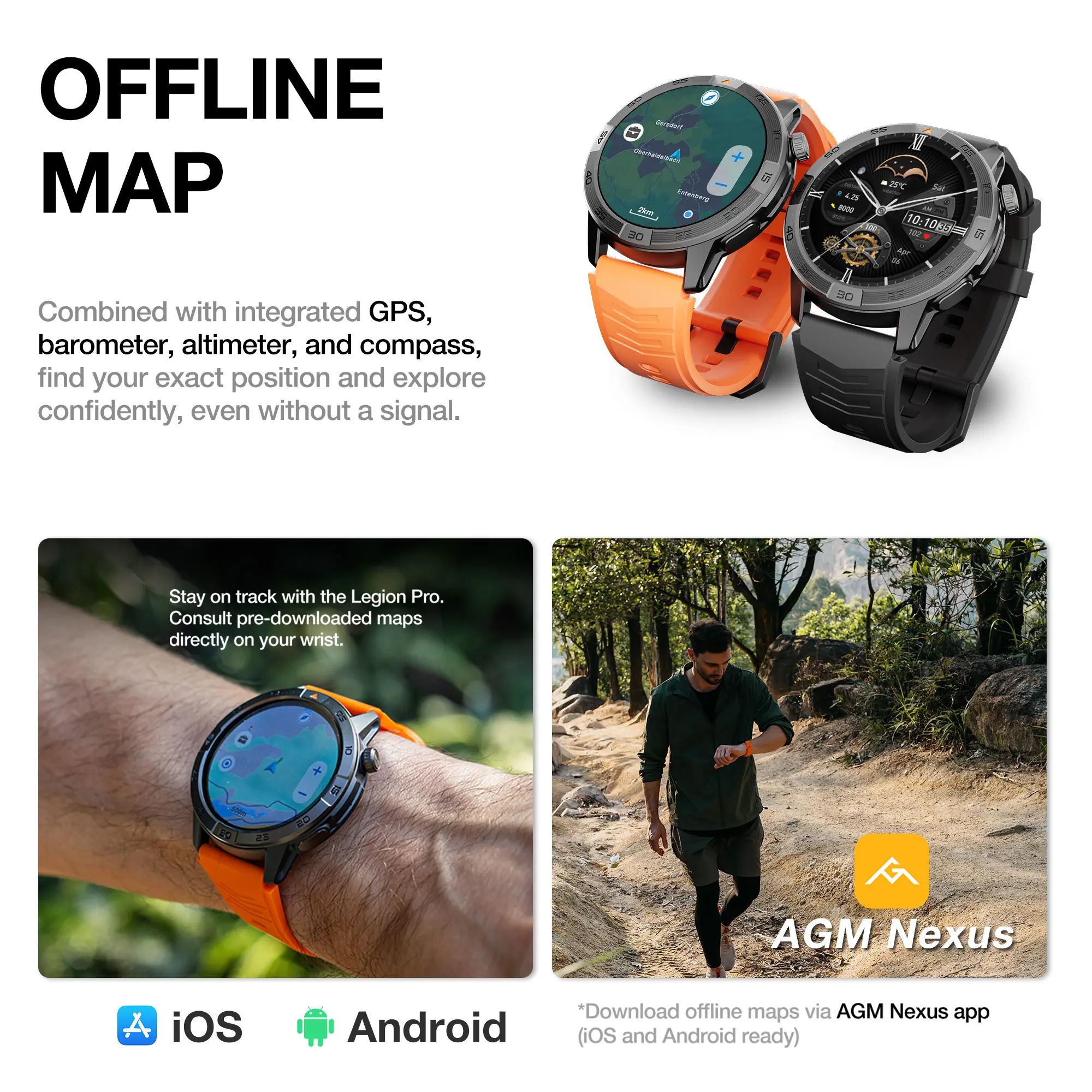 AGM Watch W1 Pro GPS Offline Map 5ATM IP68 Waterproof 100+ Sports Modes Golf Swimming Relojes Men Smart Watch 2025
