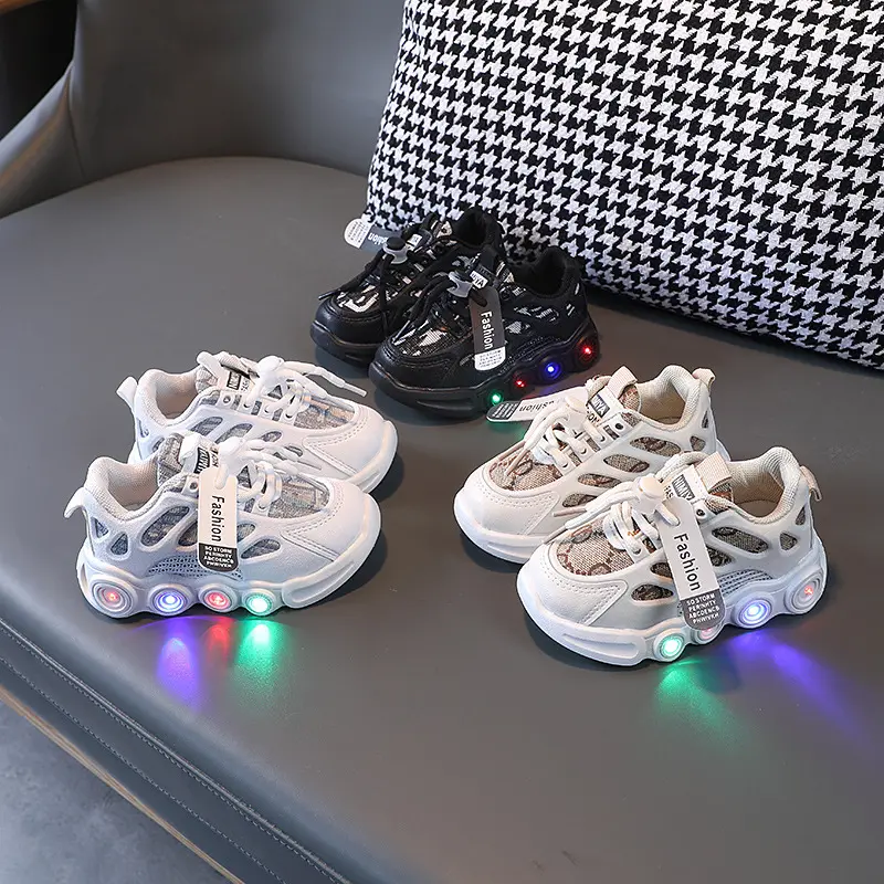 Ashkintel 2025 Spring Autumn LED Light-Up Track Sport Shoes Kids Boys Girls Small Medium-sized Fashionable Soft-Soled