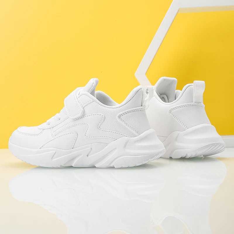 Children Shoes Kids Casual Sneakers Black Pu Leather Sports Shoes for Boy Girls White Shoes School Running Tennis Sneaker