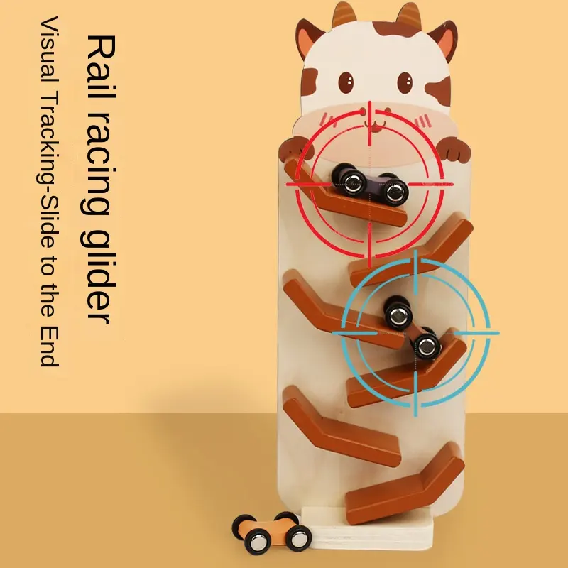 Children's Wooden Cartoon Slide Car Educational Toy for 2-4 Year Olds with Hands-On Exercise & Visual Tracking