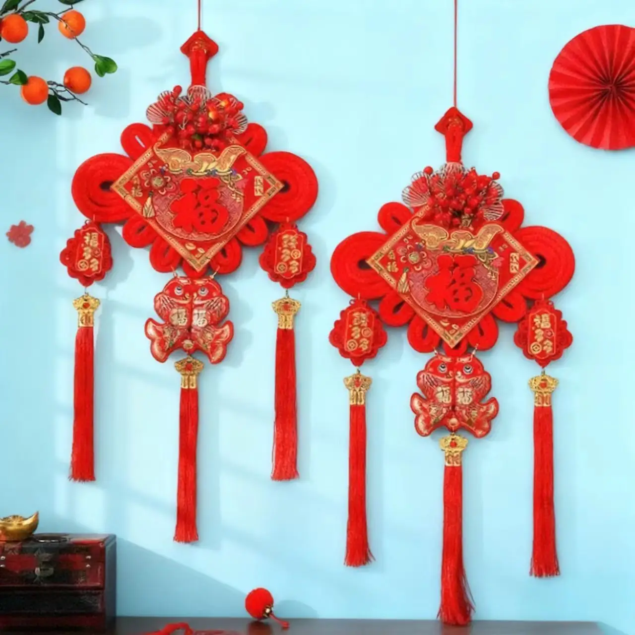 Chinese Knot Rectangle Pendant Decor for Chinese New Year and Spring Festival Eco-friendly Flannel Home & Party Decoration