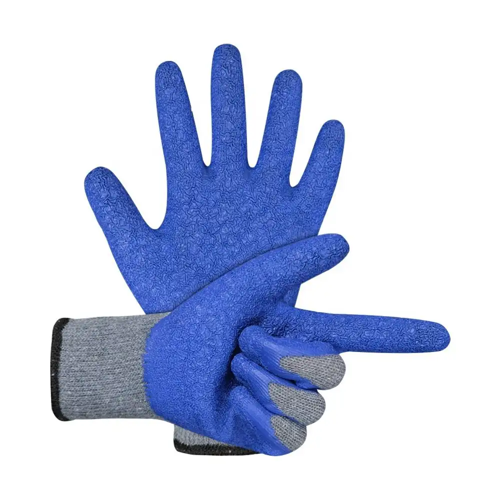 Crinkle Latex CVC Safety Gloves Vietnam Natural Rubber Palm Anti Slip Seamless Knit Polyester Elastic Knitted Wrist