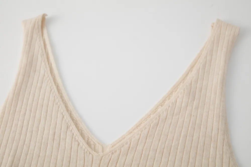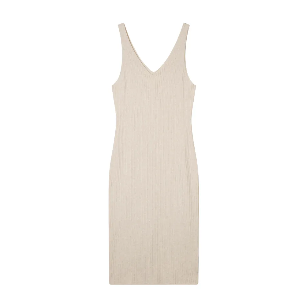 Custom OEM/ODM Women's Wool Blend V-neck Slim Fit Ribbed Sleeveless Minimalist Style Midi Knitted Sweater Dress Manufacturer