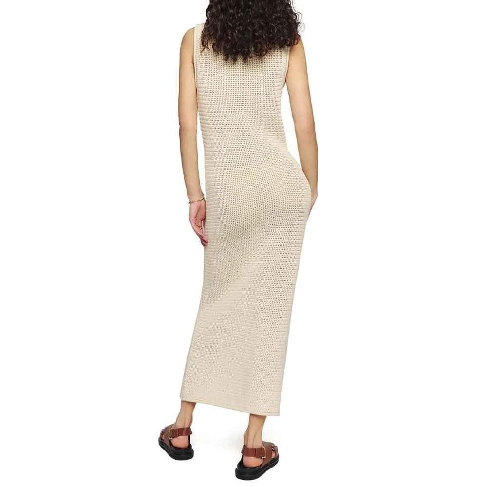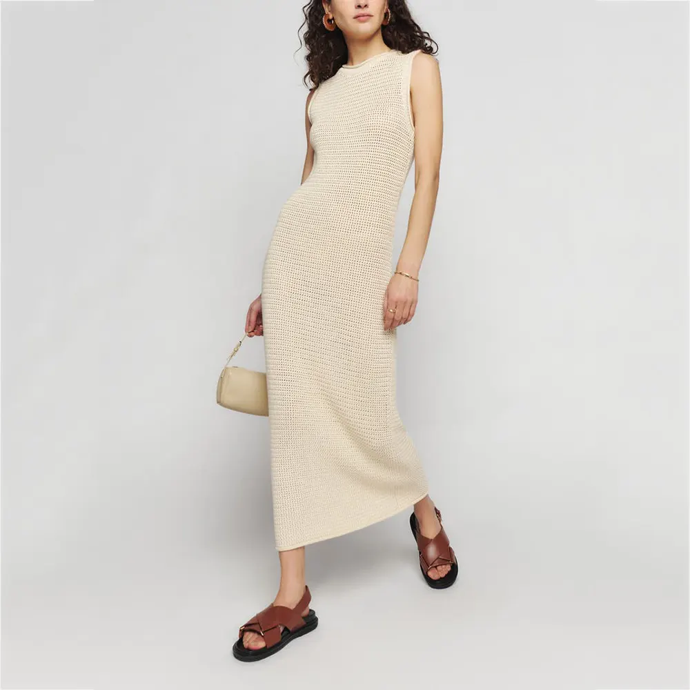 Custom Open Knit Dress Ladies Knitwear Cotton Stitch Sleeveless Crew Neck Women Sweater Knitted Long Maxi Dress Girls