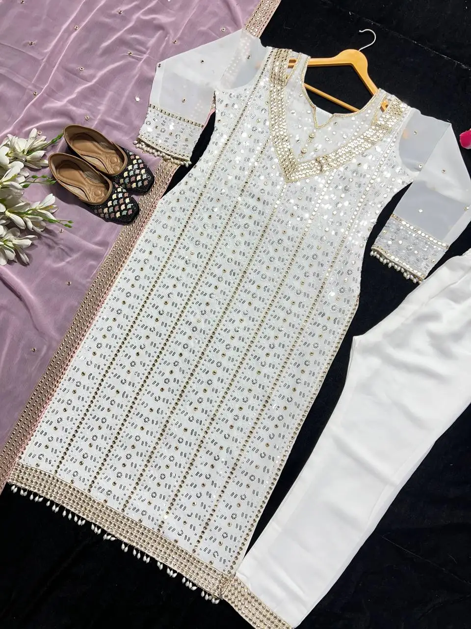 Elegant Designer Faux Georgette Salwar Kameez Suit Purt Embroidery Sequin Work Traditional for Ready Wear Wedding Functions