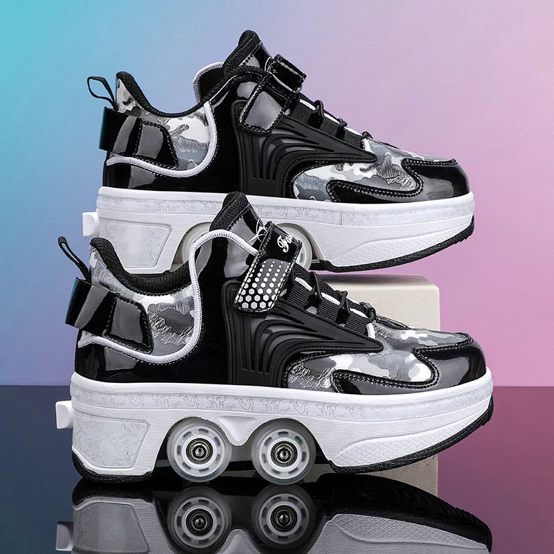 Factory's Hot-selling Double-row Roller Skates for Boys and Girls with Rubber Outsoles Children's Sports Shoes