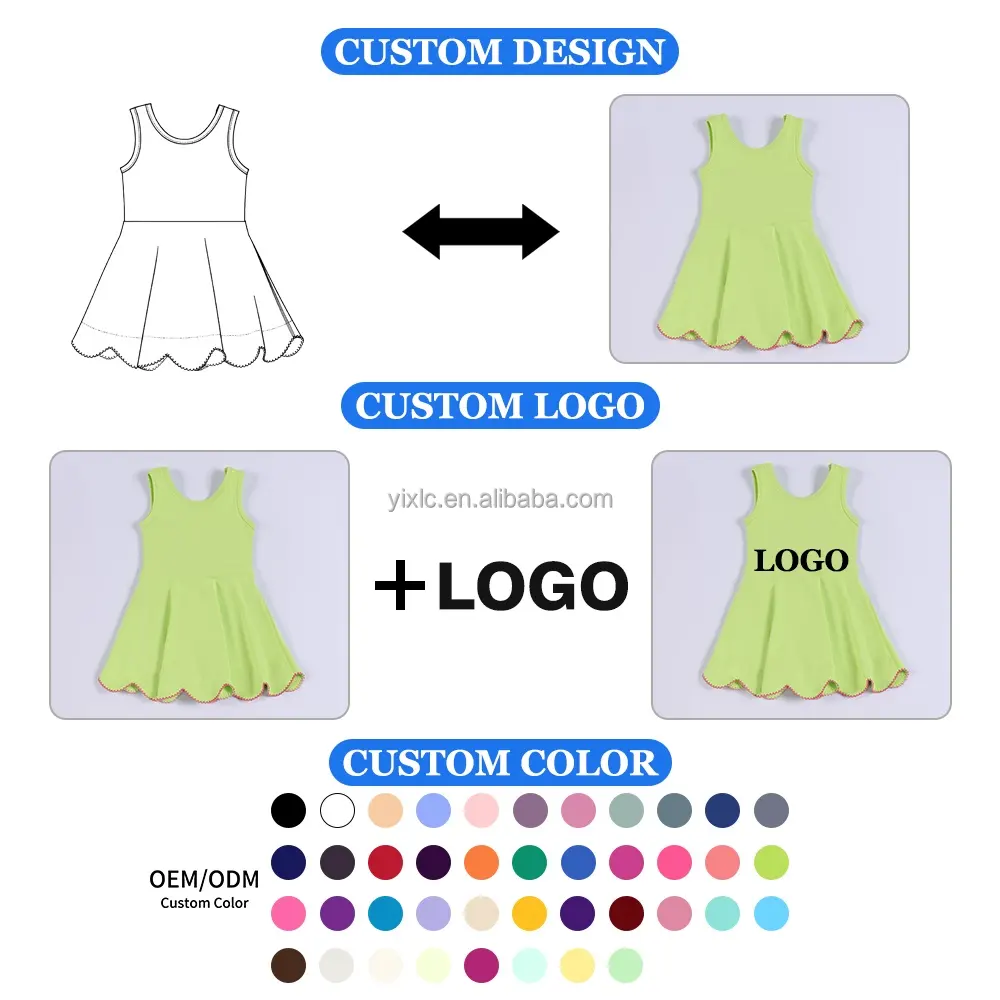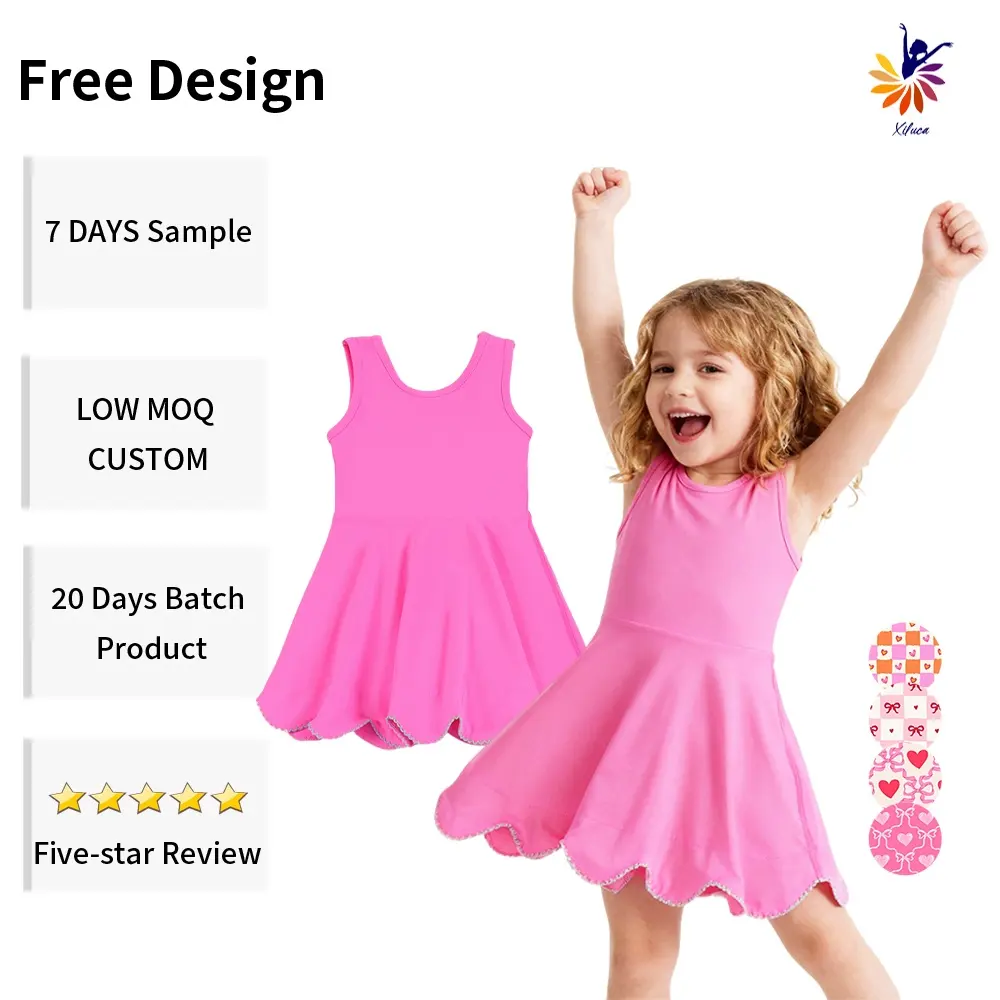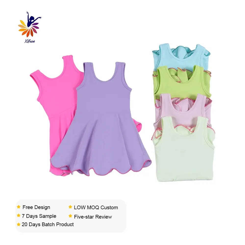 Girls Yoga Dress Sleeveless Tank Style with Lace Embroidery Hem and Built in Shorts Custom Color Logo