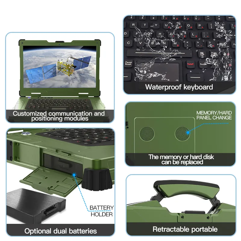High Performance 15.6inch Fully Rugged IP65 Portable Laptop Computers with Intel i7 i9 Processor for Defense