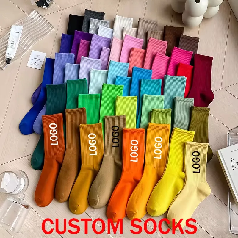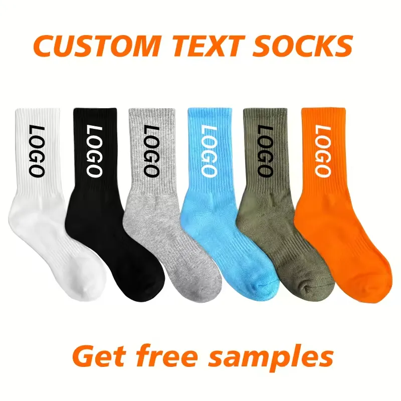 High Quality Custom Logo Sport Socks with Jacquard Embroidery Unisex Crew Socks for Men Women Bottom Logo Position Youth Size