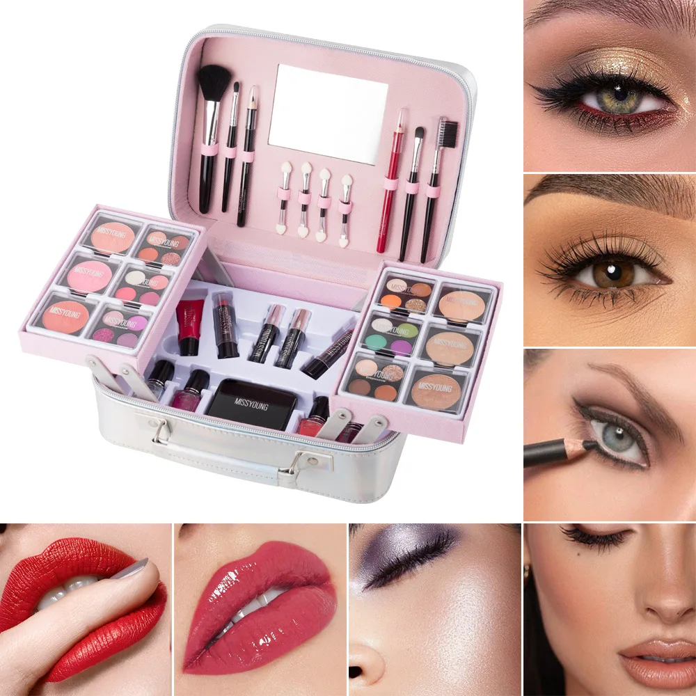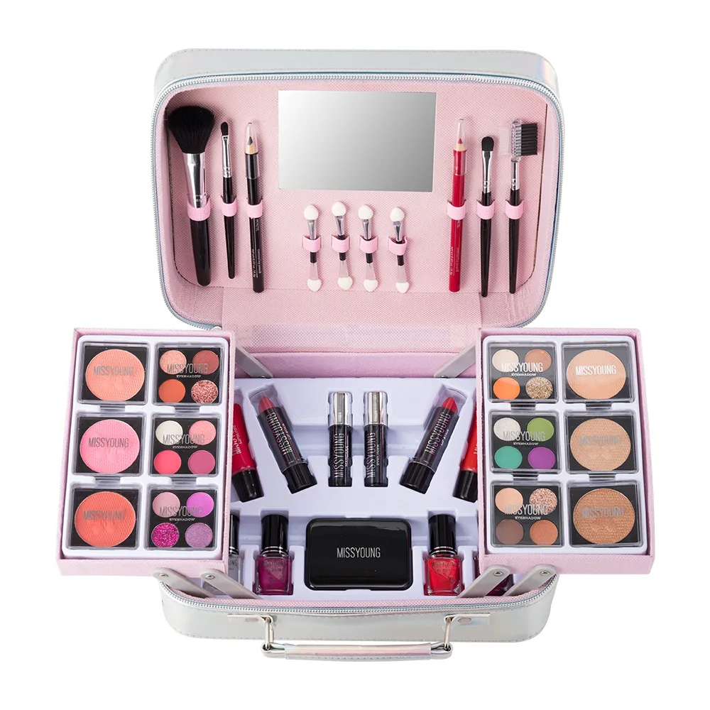 High Quality Facial Makeup Waterproof Easy to Color High Gloss Eye Shadow Powder Blusher Lipstick Set