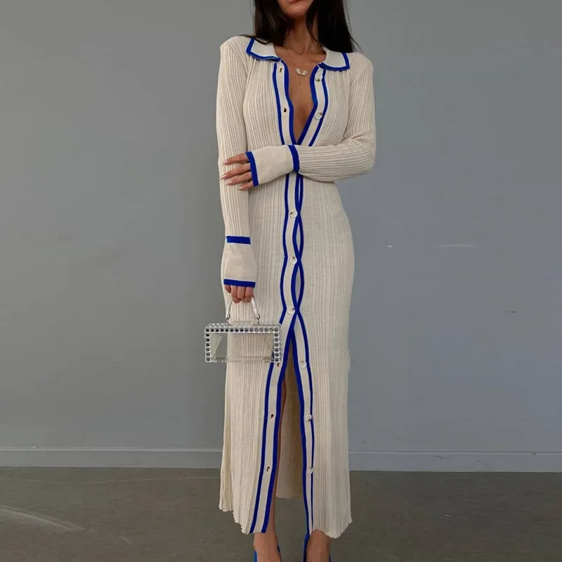 Fall Knitted Woman's Dress Ladys Clothing Long Sleeve Hollow Out Dress Women Hoodies Zimmer Dresses Women Luxury Clothing