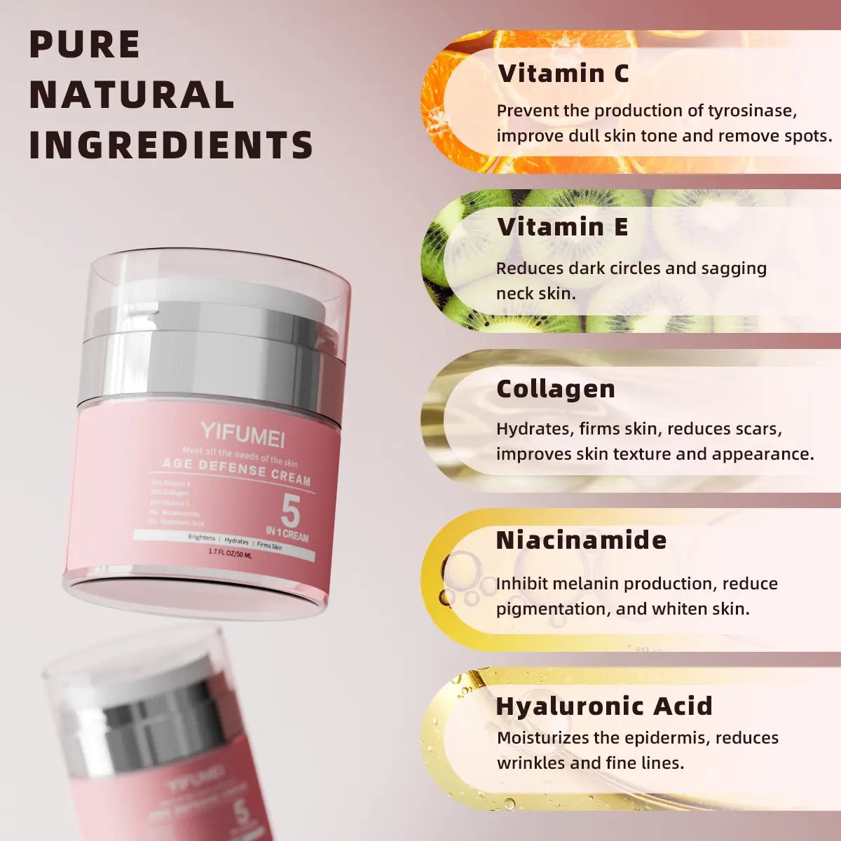 Hot Selling 5 in 1 Vegan Brightening Skin Facial Moisturizing Dark Spot Removing Natural Anti Aging Wrinkle Whitening Face Cream