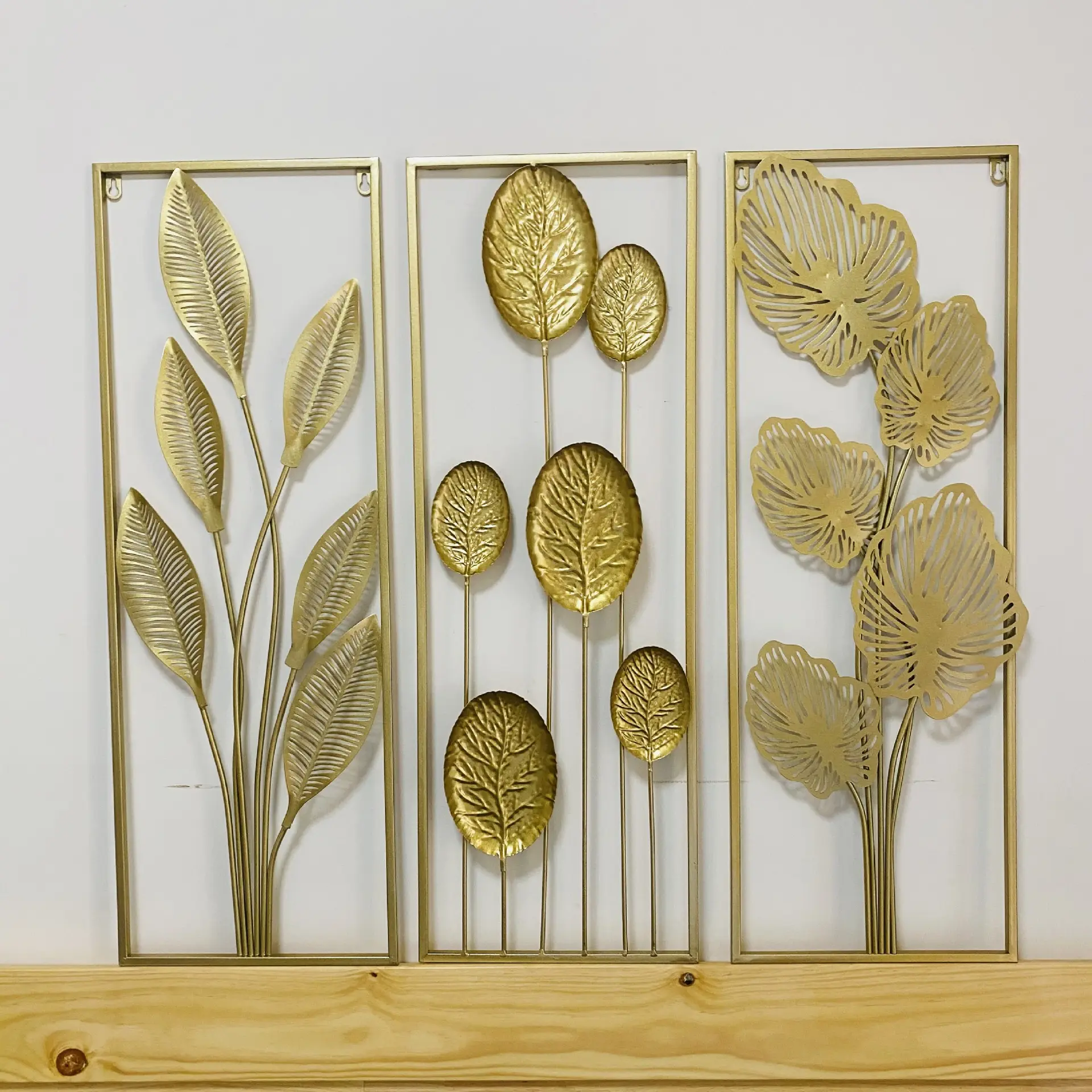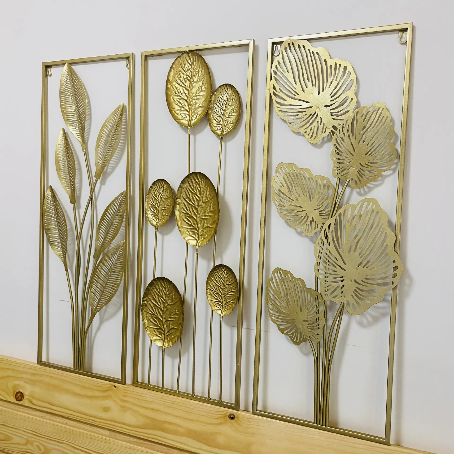 Hot Selling Custom Made Contemporary Gold Metal Iron Wall Decor Sculpted Modern Leaf Home Living Room Display Drop Shipping