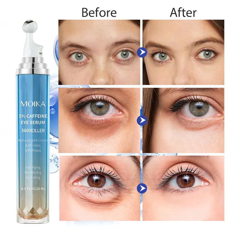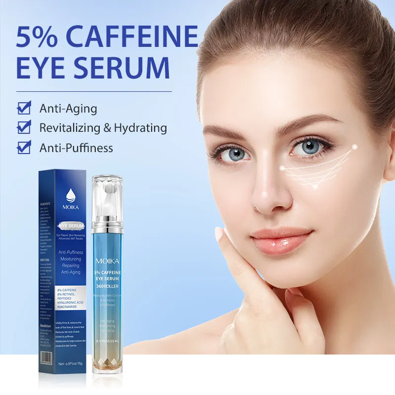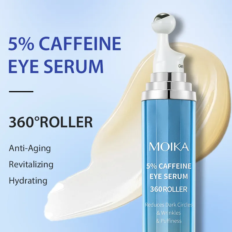 Korean 5% Caffeine Anti-Aging Skin Care Under Eye Serum Dark Circles Puffiness Wrinkles Eye Roller Serum Cream With Roller