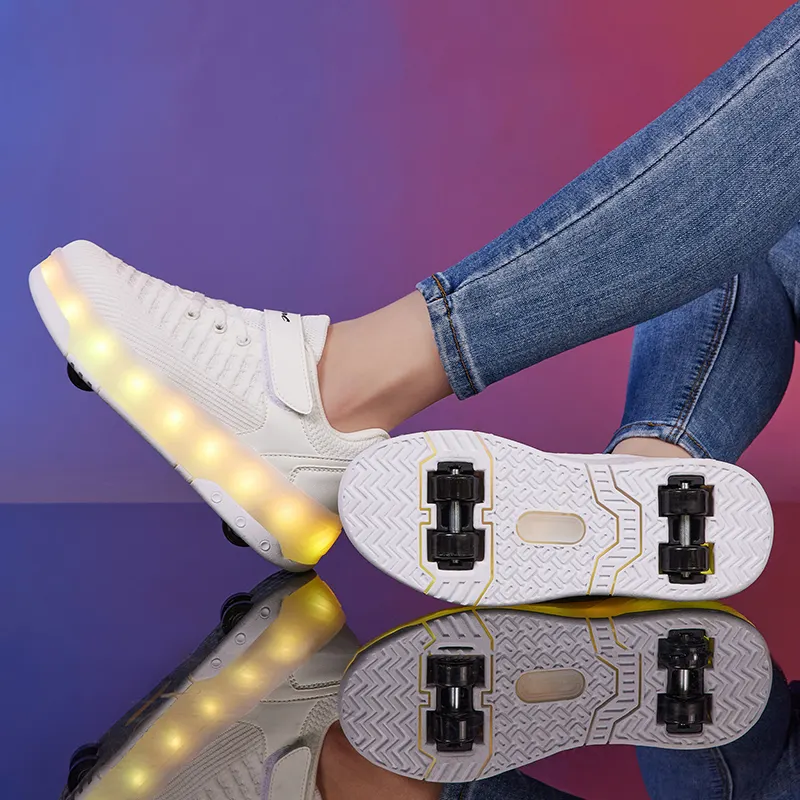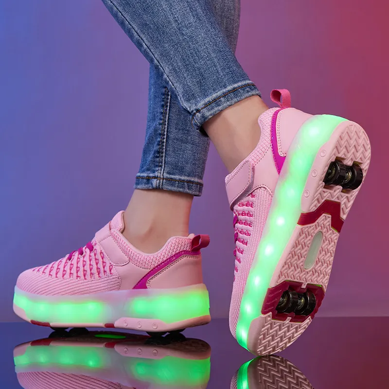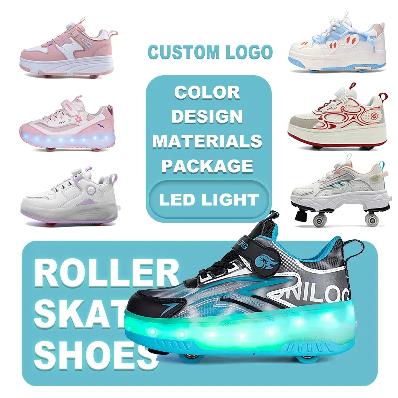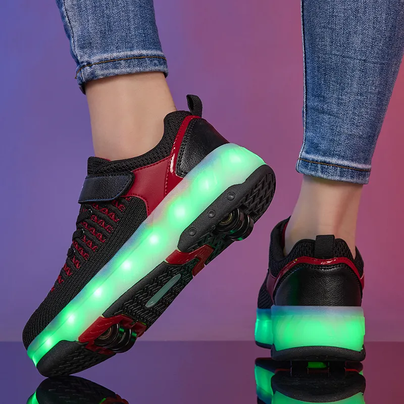 LED Light-Up Retractable PowerSlide Skate Shoes for Kids Boys and Girls Rolling Sneakers with Removable Wheels Sport Shoes