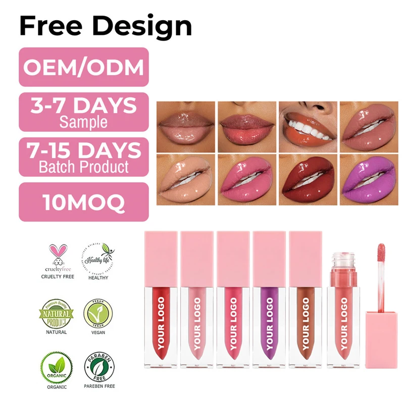 Lip Gloss High Pigment Liquid Long Lasting Glossy Makeup Cruelty Free Vegan Mineral Nude Private Label Custom Logo Clear Pink