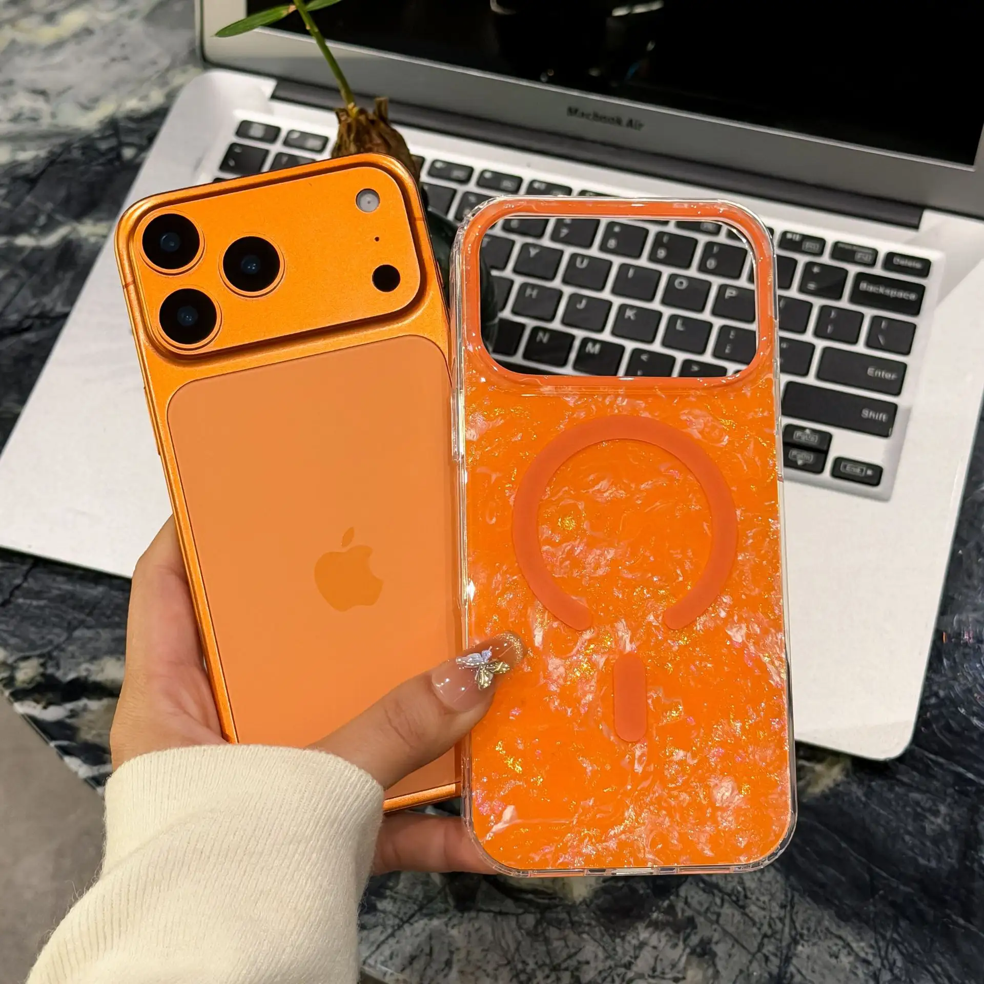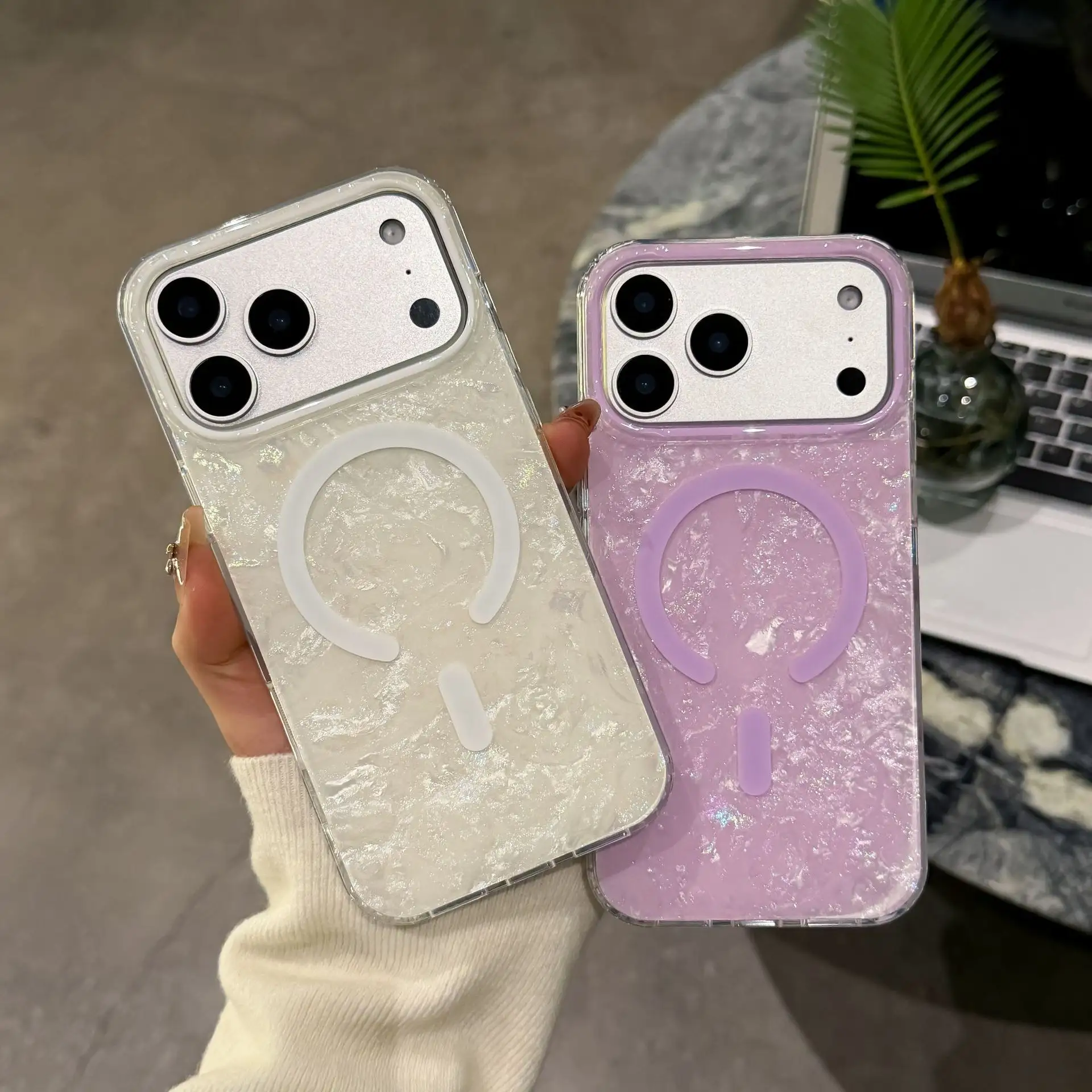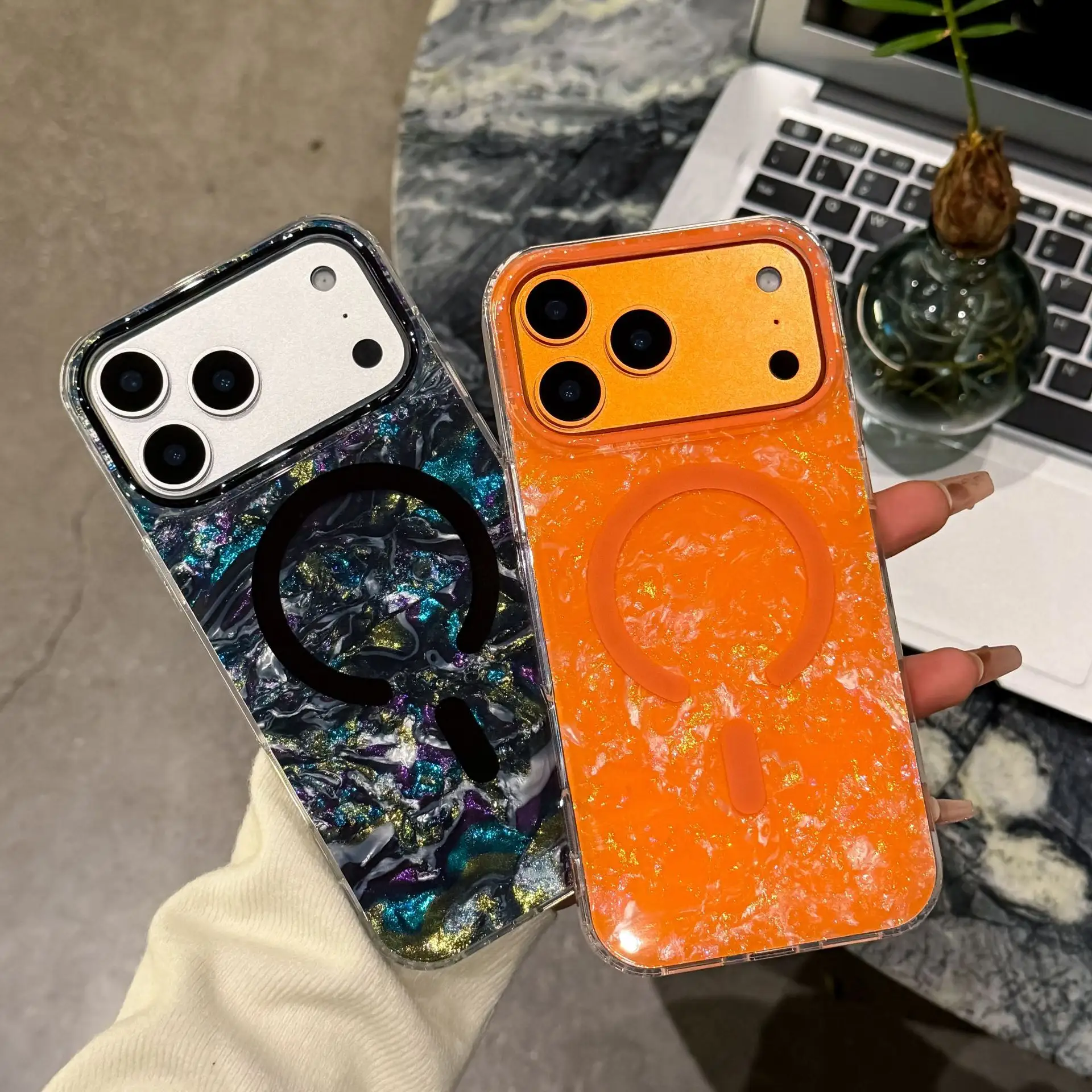 Luxury Glitter Gilded Colored Sea Shell Pattern Magnetic Phone Case for IPhone17 Air 16 15 Pro Max Shockproof Bumper Cases Cover