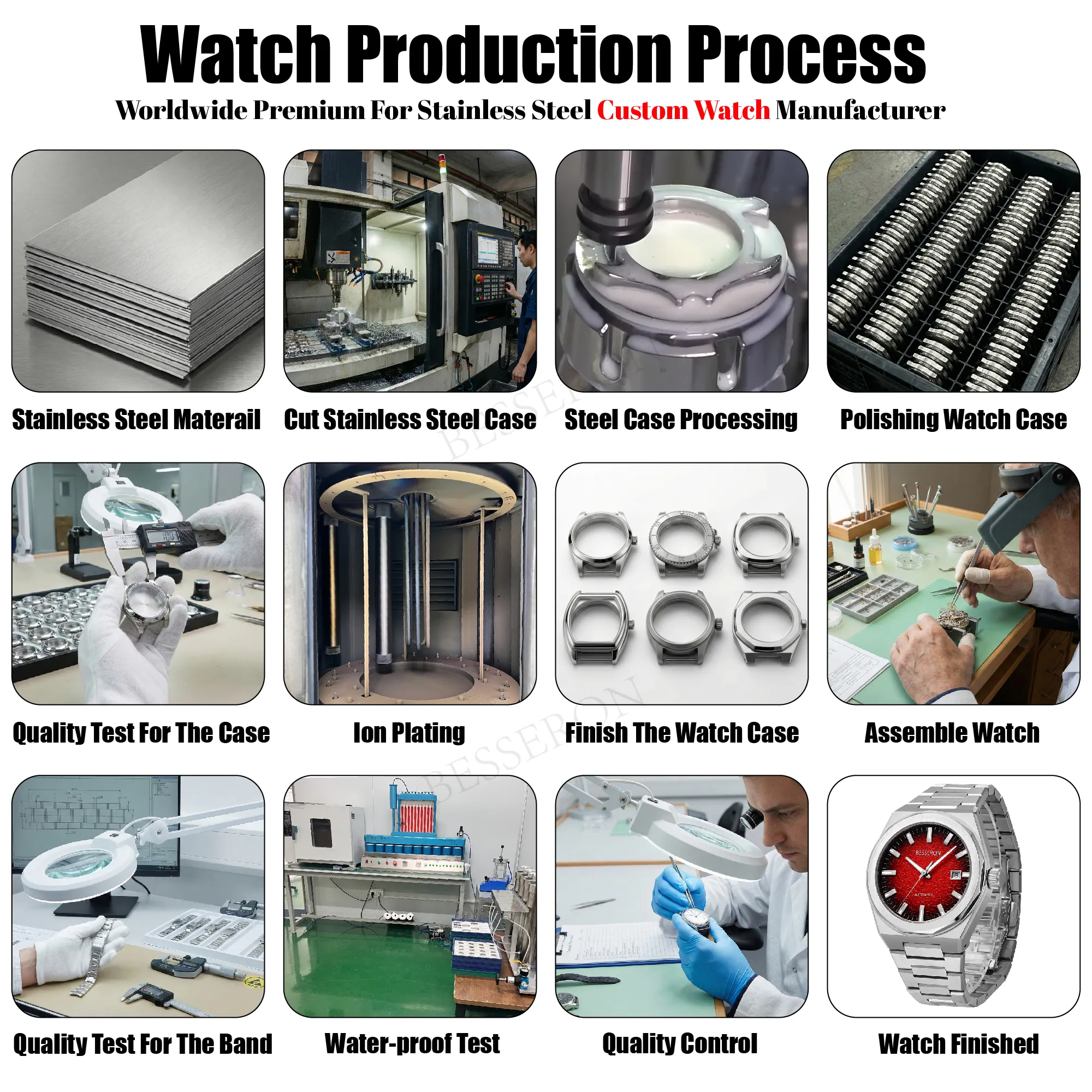 Luxury Men's Stainless Steel Quartz Sport Fashion Watches Waterproof Alloy Case Luminous Pointer Glass Back High Quality