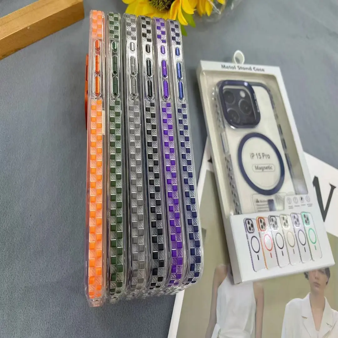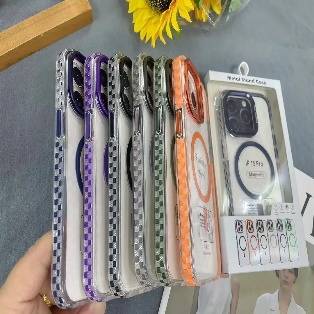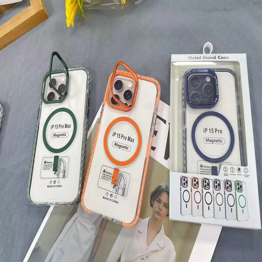 Shockproof Tpu Magnetic Stand Phone Case With Camera Lens Protector Phone Case for Iphone 12 13 14 15 Pro Max