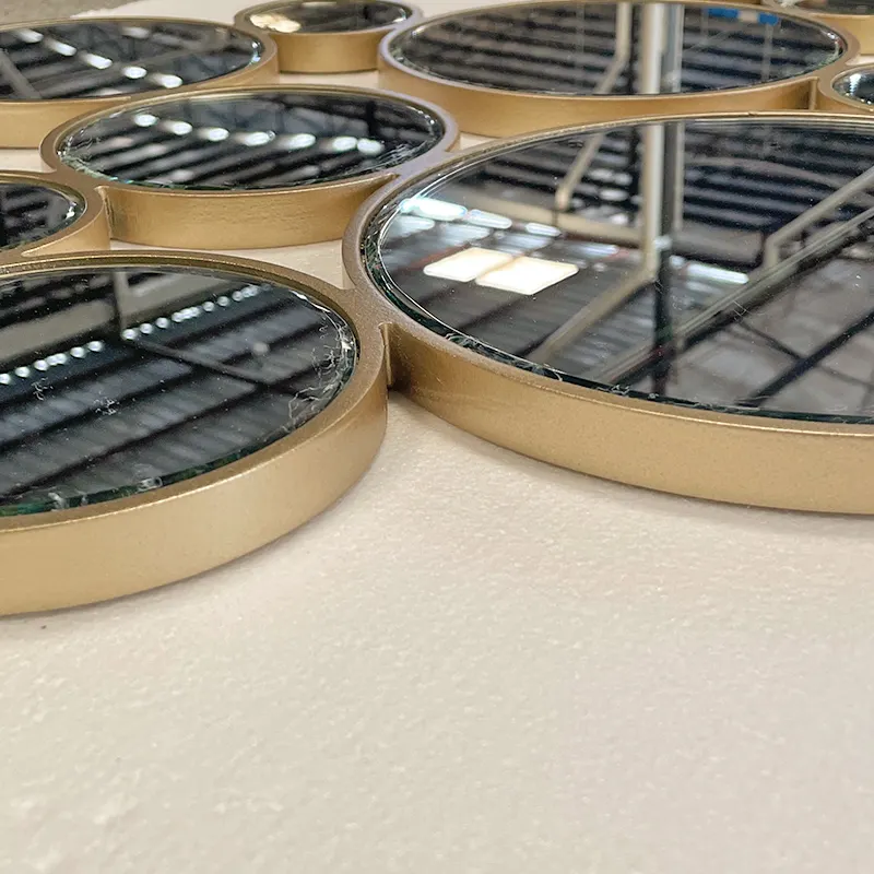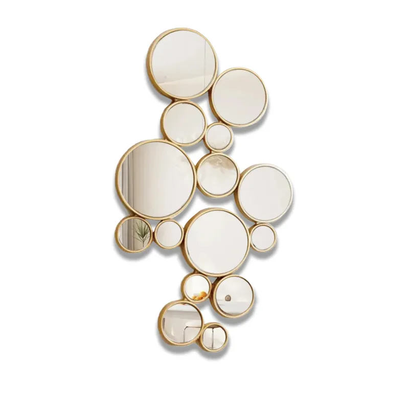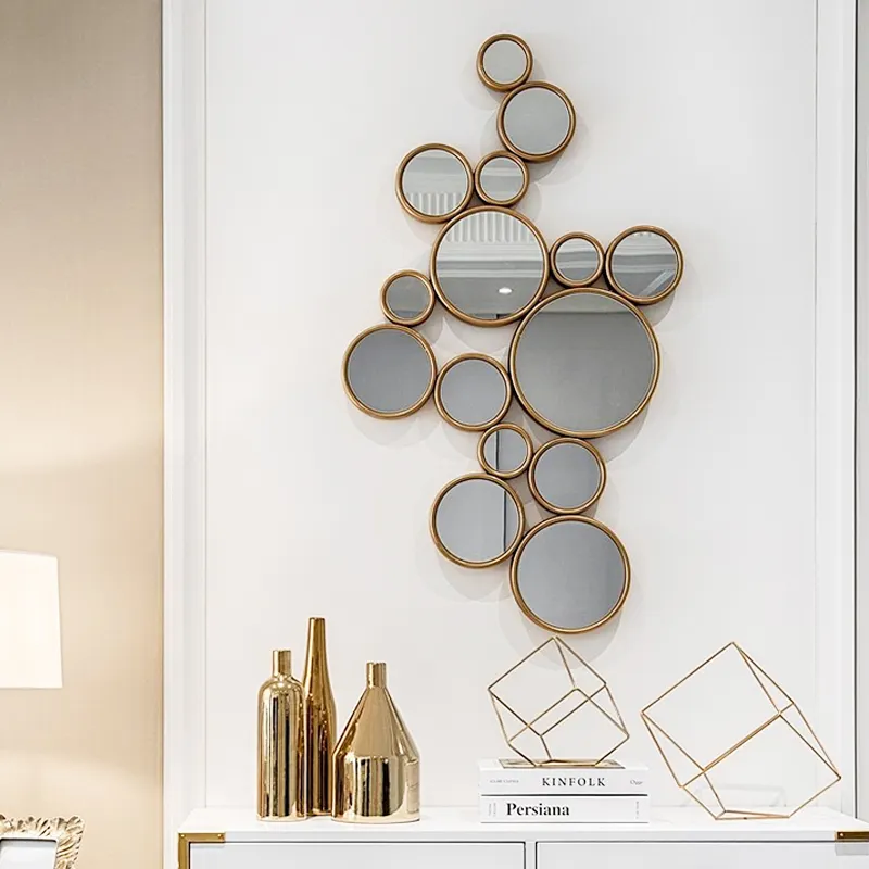 Modern Home Decor Luxury Art Design 3D Wall Hanging Multiple Geometric Golden Wood Frame Round Wall Sticker Wall Mirror