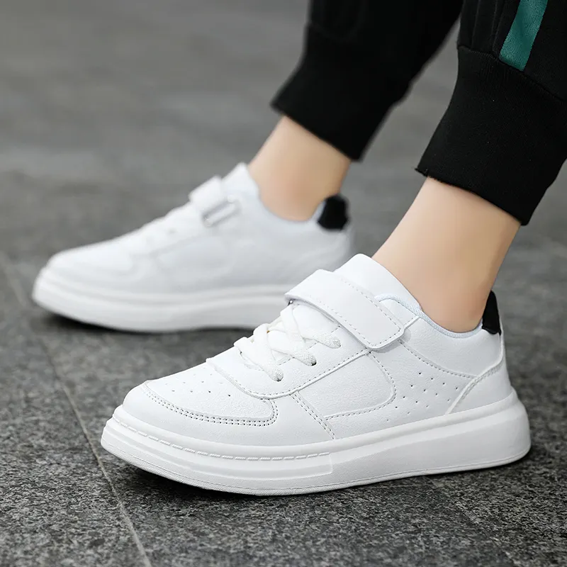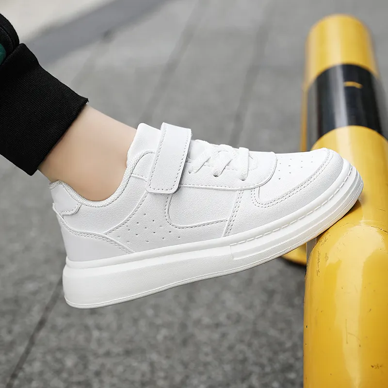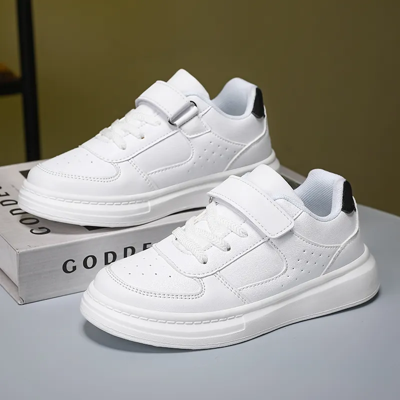 New High Quality Four Seasons Kids Tenis Sneakers Boys Girls Sports Casual Board Shoes Small White PU Mesh EVA Midsole