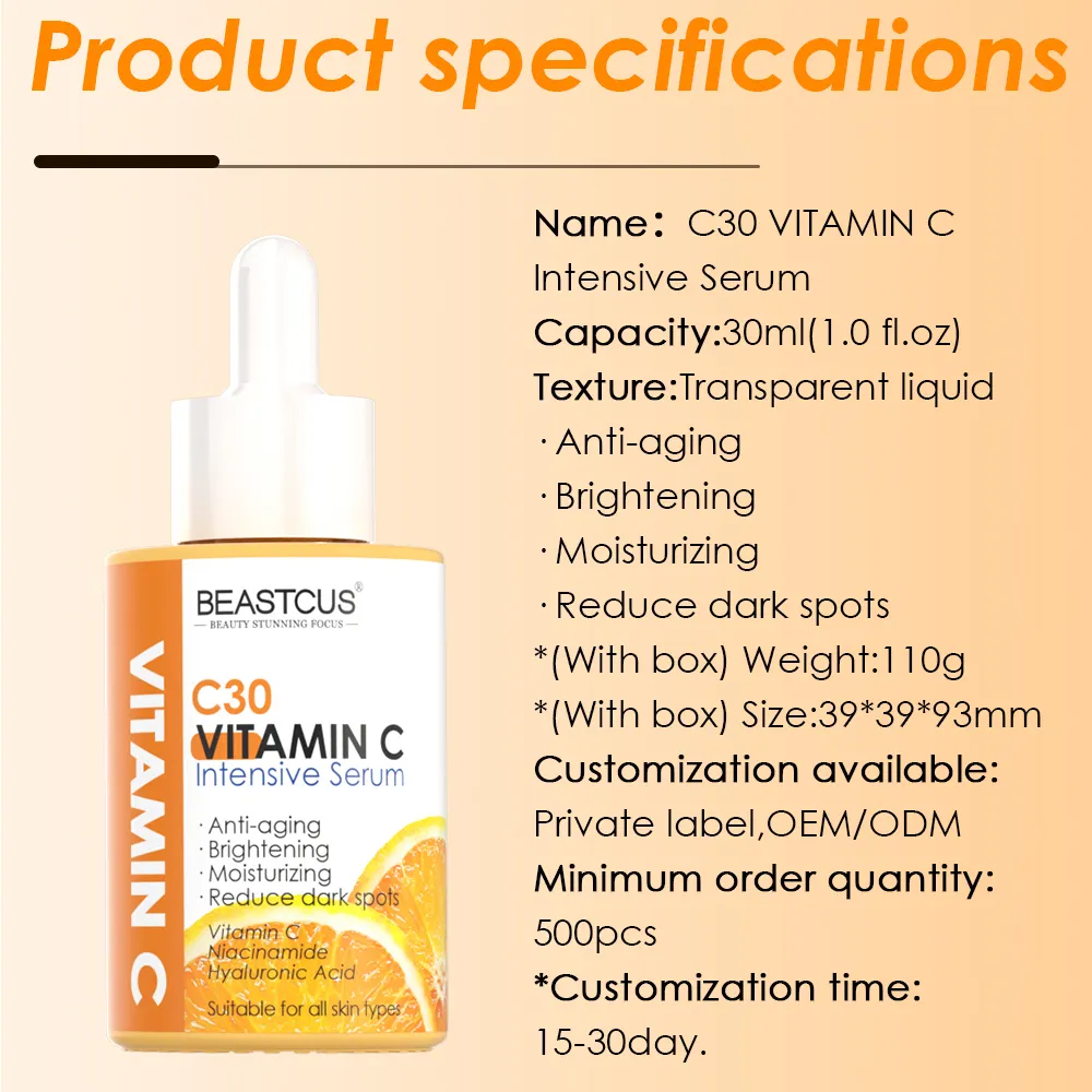 [NEW] Private Label Skincare Skin Whitening Facial Serum for Face Dark Spots Remover Hyaluronic Acid Niacinamide Vitamin C Serum