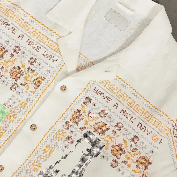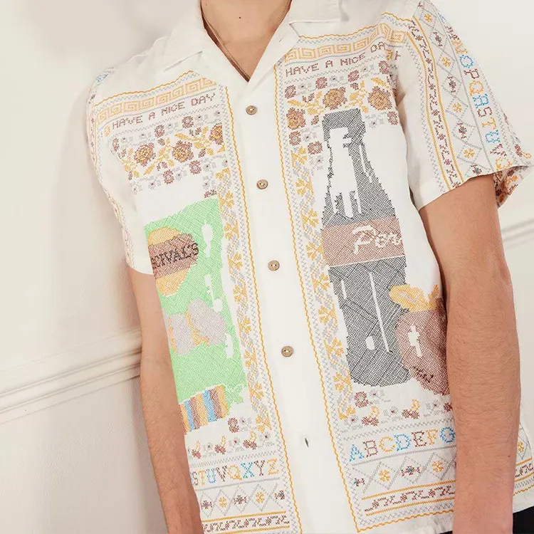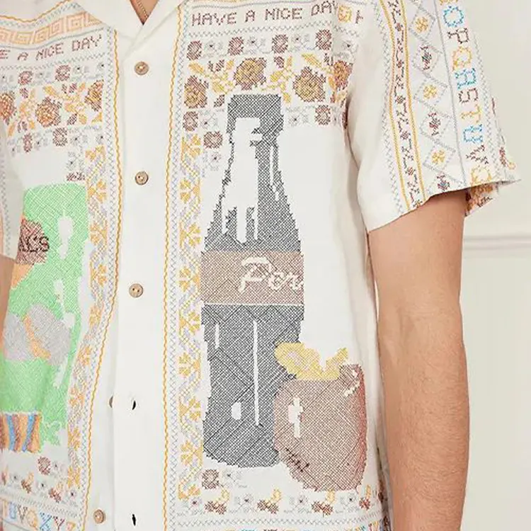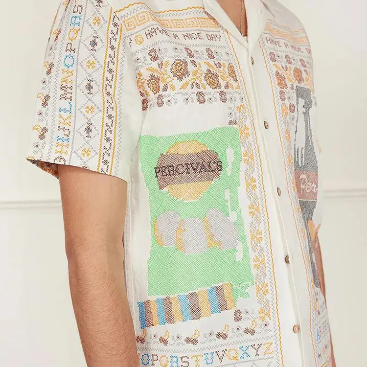 New Style Fashion Breathable Shirt Customized Logo Embroidery Short Sleeve Linen Cotton Button up Shirt for Men