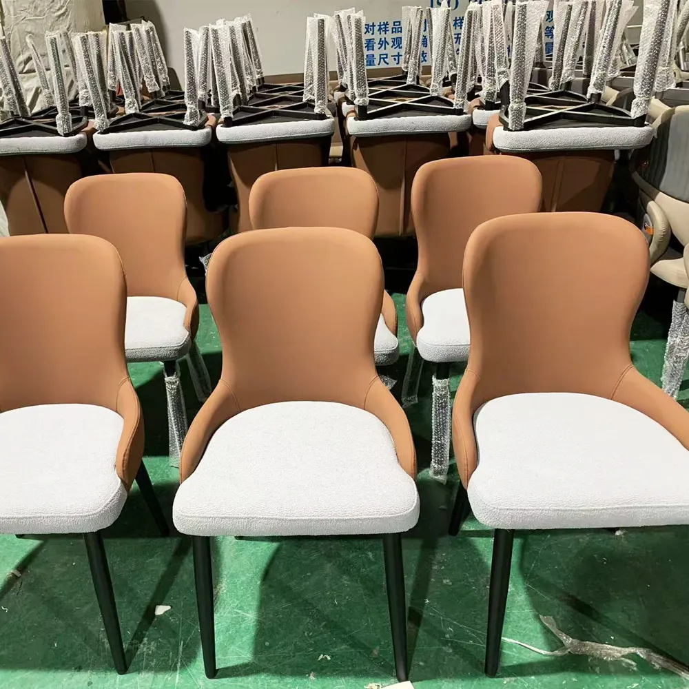 Nordic Modern Minimalist Designer Fabric Dining Chairs with Metal Iron Backrest for Home and Hotel Use