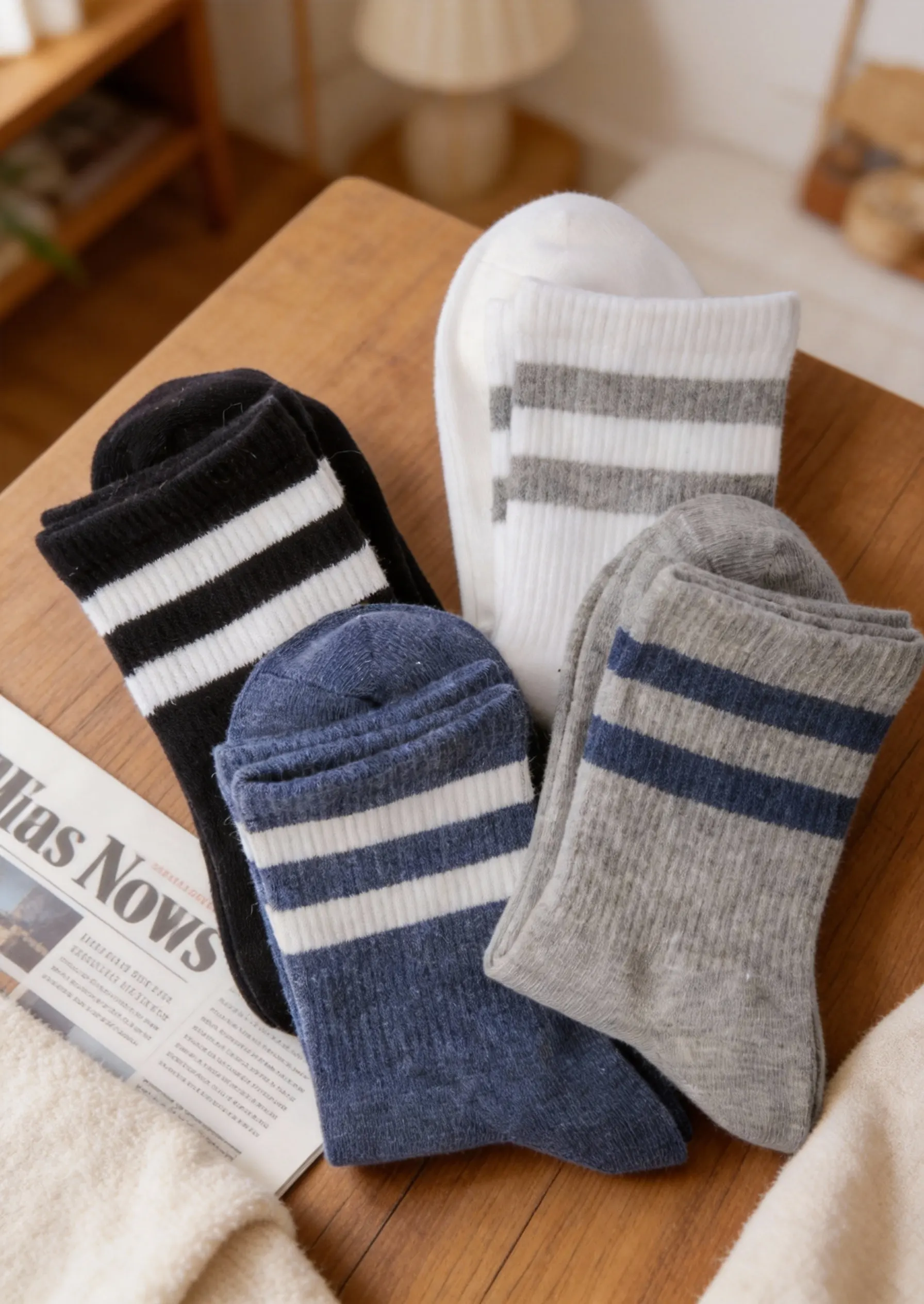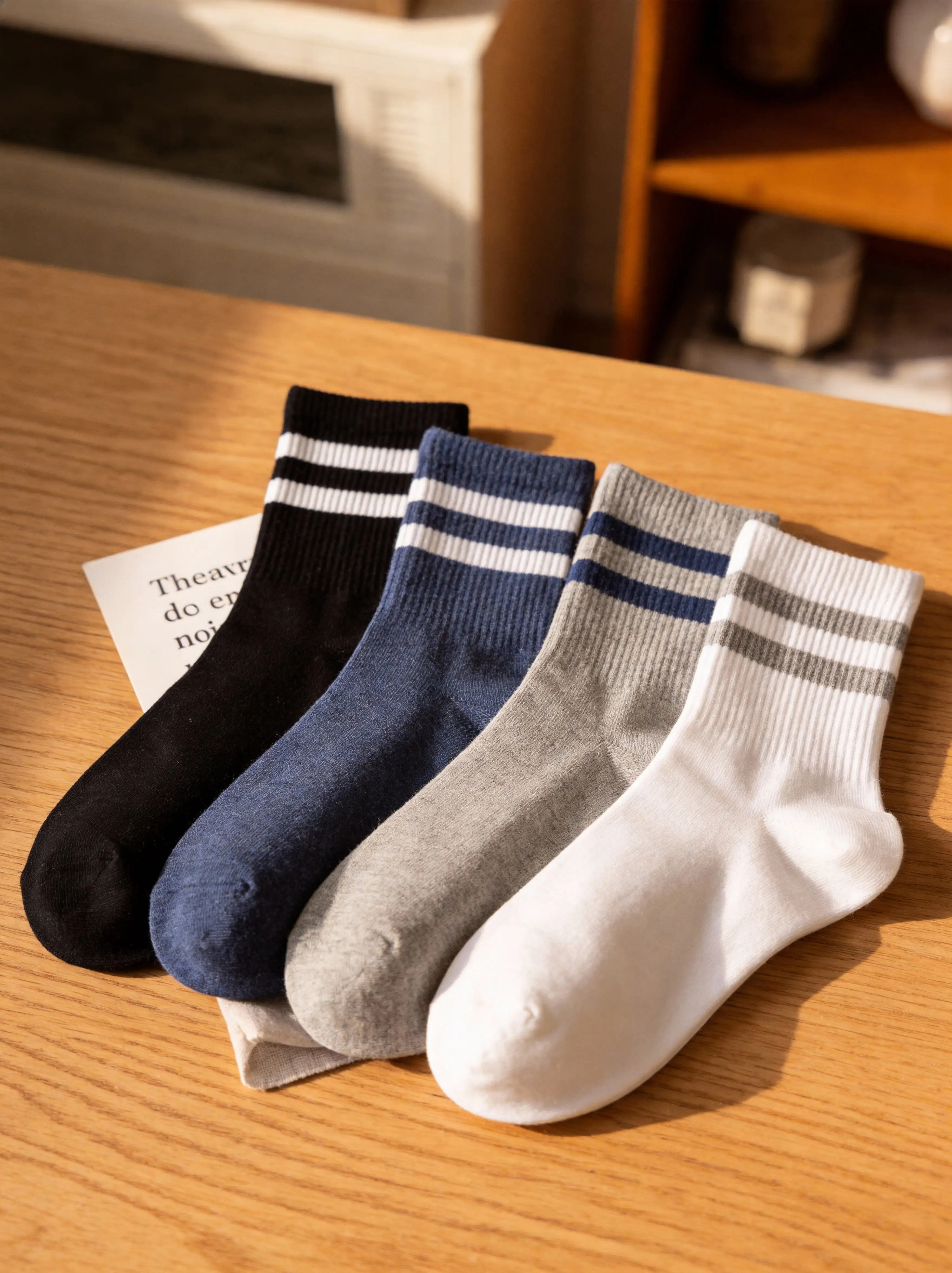 ODM/OEM Accepted White Double Stripe Sporty Breathable Sweat-Absorbent Mid-Calf Cotton Spandex Blend 4 Pairs Men's Daily Socks