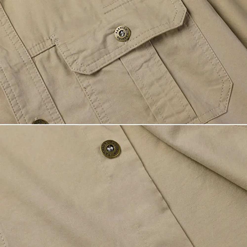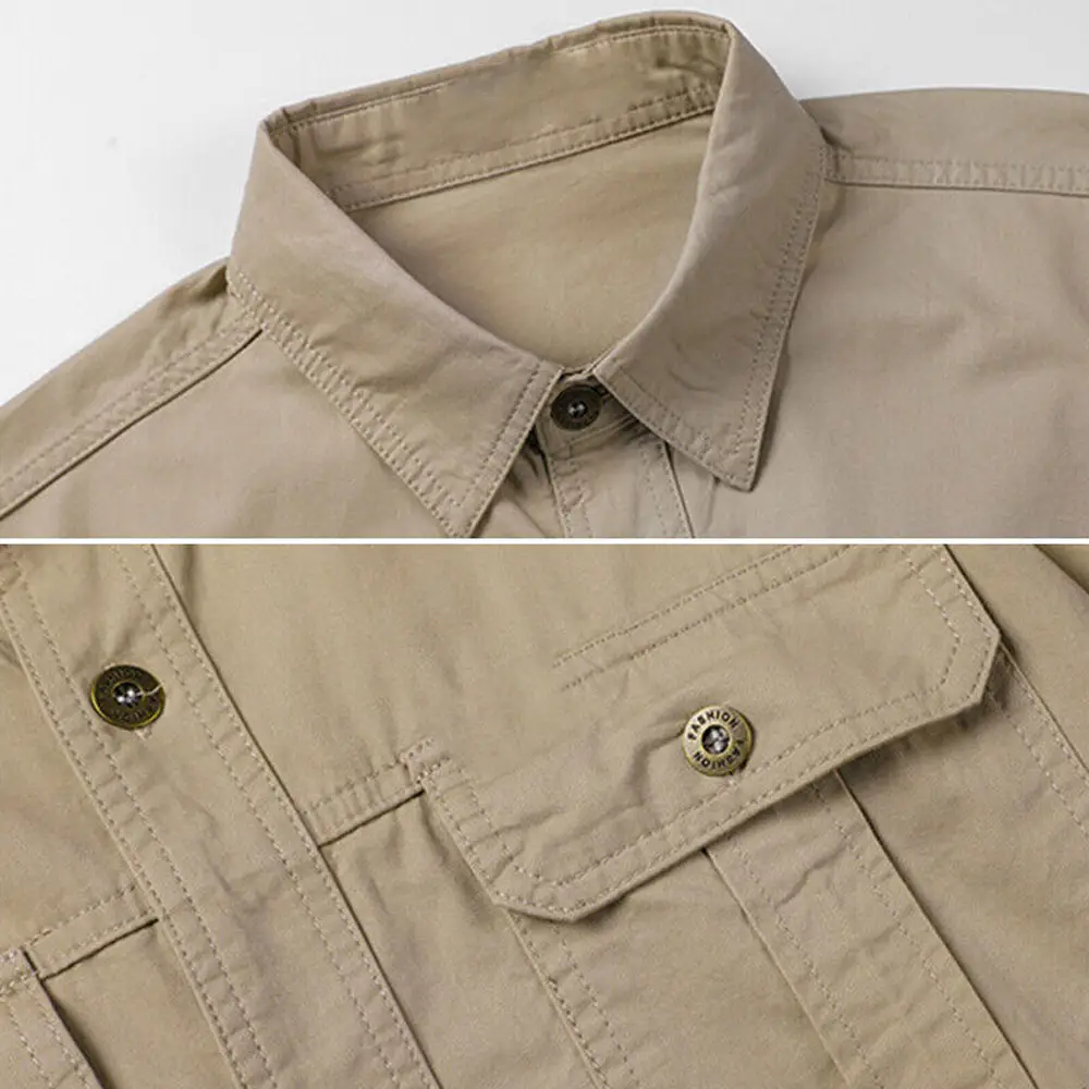 Men's Casual Cotton Linen Long Sleeve Shirt Double Pocket Plus Size Satin Solid Pattern for Autumn Vacation-Available Wholesale
