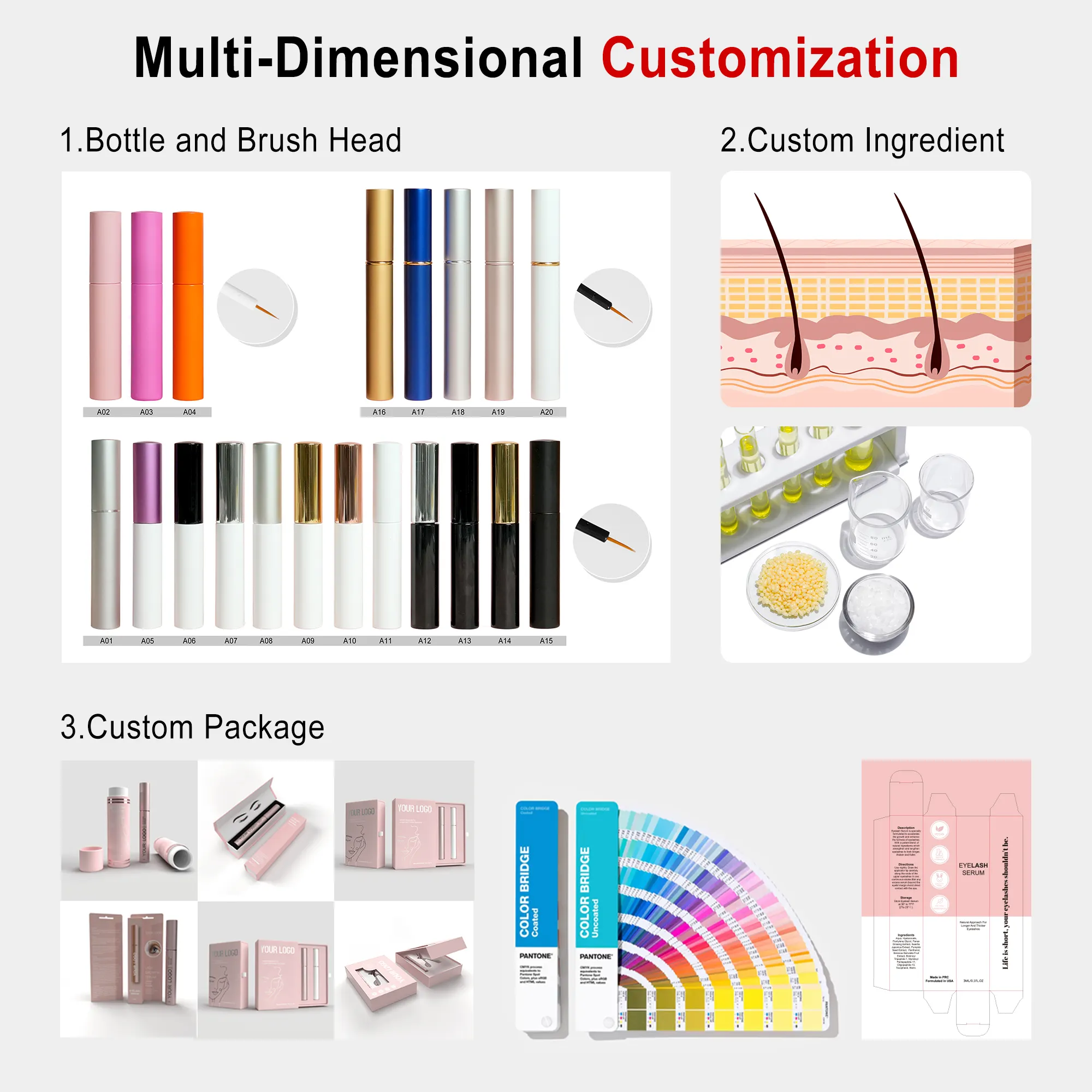 Private Label Organic Natural Eyelash Enhancing Treatment Hydrating Cosmetic Longer Thicker Healthier Lash Extension Serum