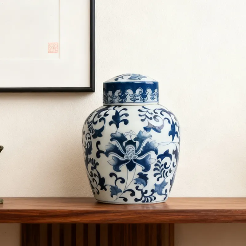 Qianrui Hot Selling Ceramic Jar with Lid 18*22cm Hand Painting Antique Floral Jar Tabletop Pattern Vases for Home Decoration