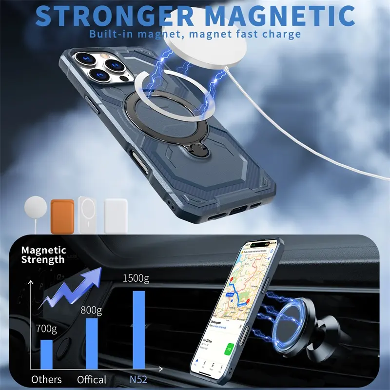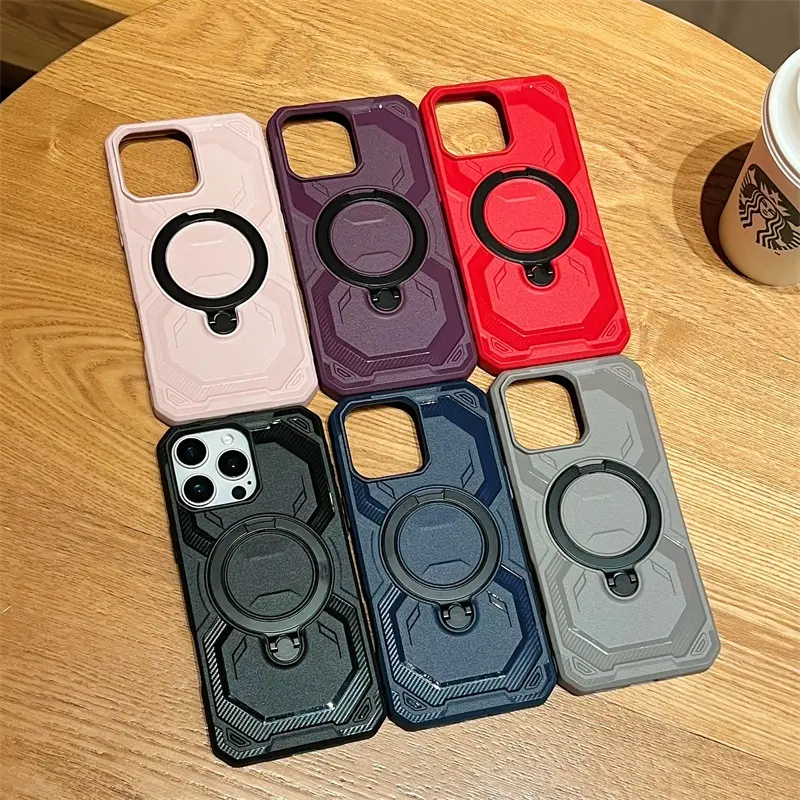 Shockproof Magnetic Phone Case with Ring Kickstand for iPhone Case Protective Mobile Back Cover for Samsung for Redmi for Google