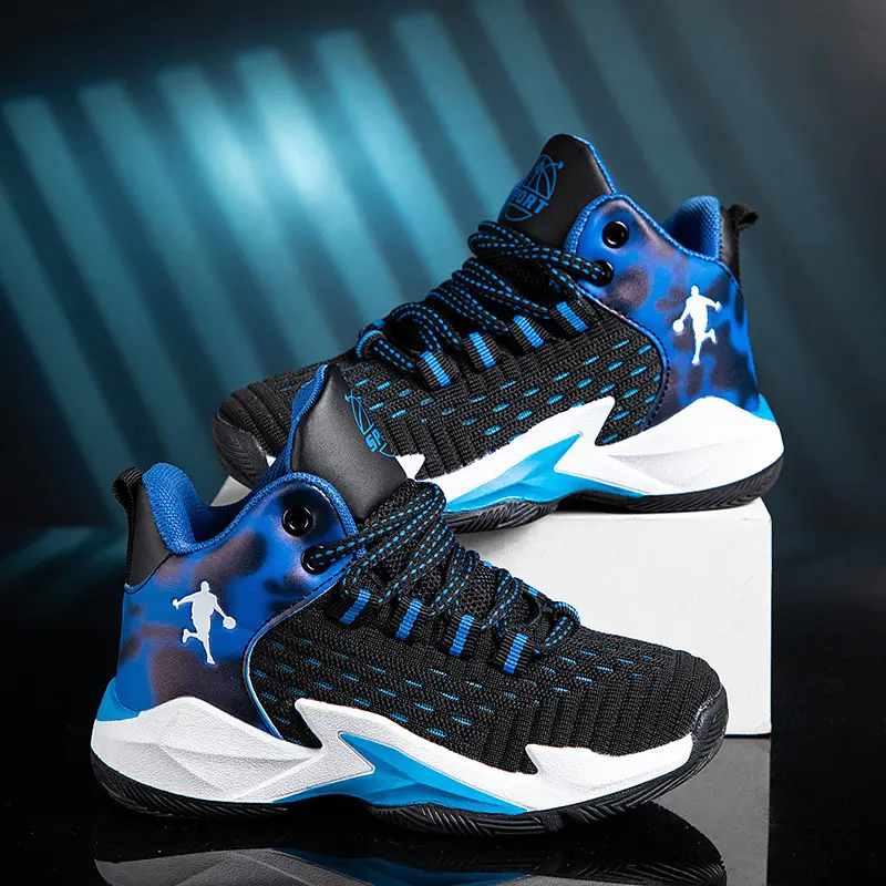 Teens Boys Basketball Running Shoes Good Quality Sneakers Breathable Mesh Lace up Mid Top Antil Slip Sport Shoes for School Boys