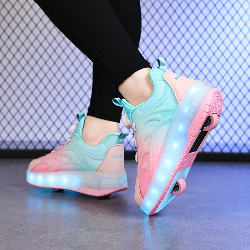 Unisex LED Light-Up USB Charge Roller Skate Shoes Kids' Sport Sneakers with Flashing for Boys and Girls Gifts