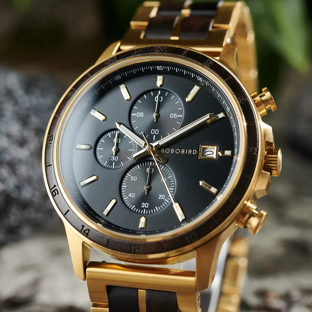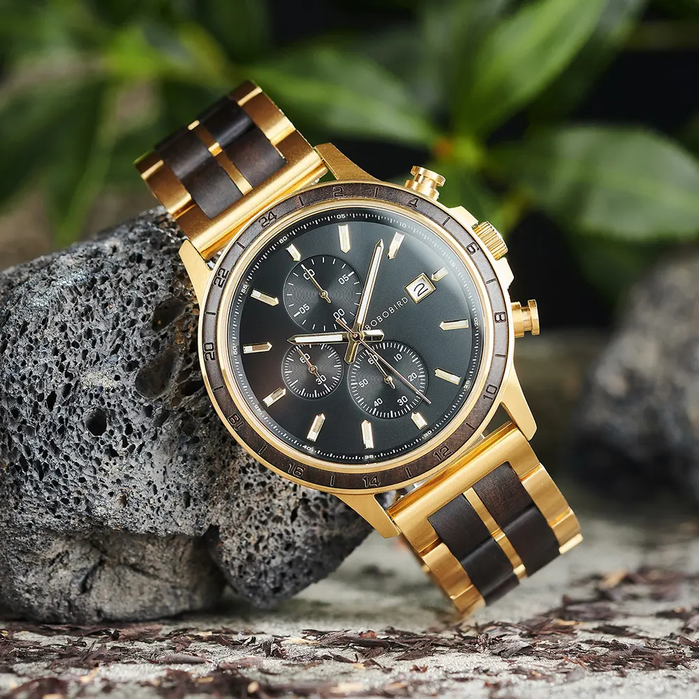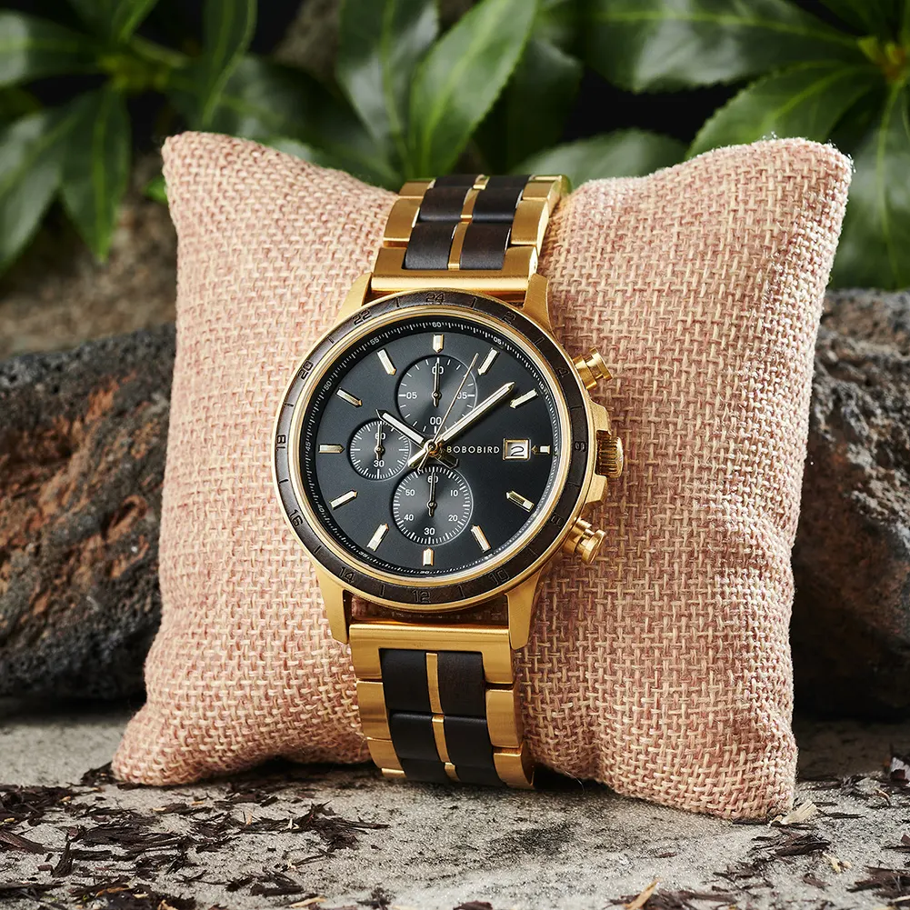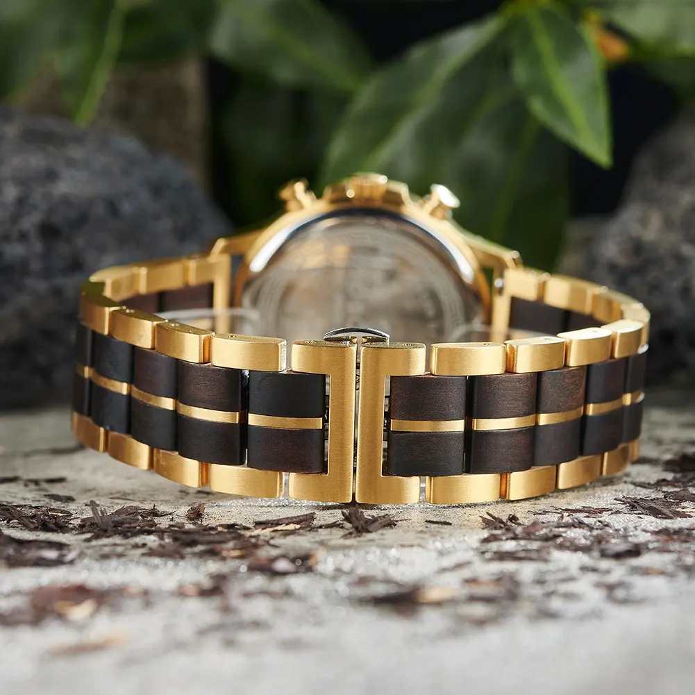 Water Resistant Low Moq Dropshipping Japanese Movement Metal and Wood Strap Sun Pattern Craftsmanship Luminous Nail Wood Watch