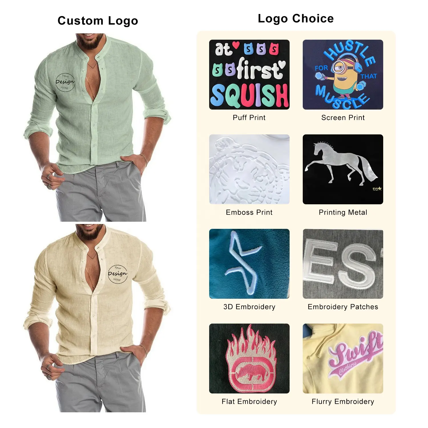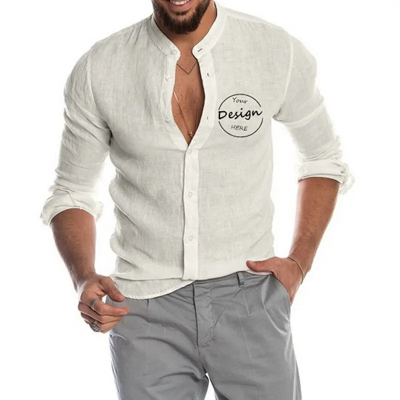 Wholesale Comfortable Breathable Cotton Linen Mens Casual Shirt Embroidery logo