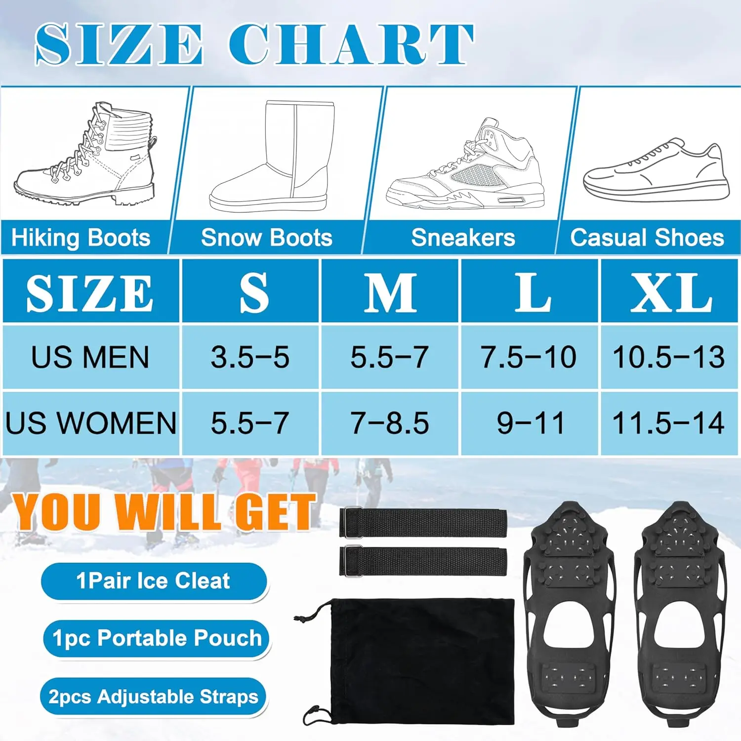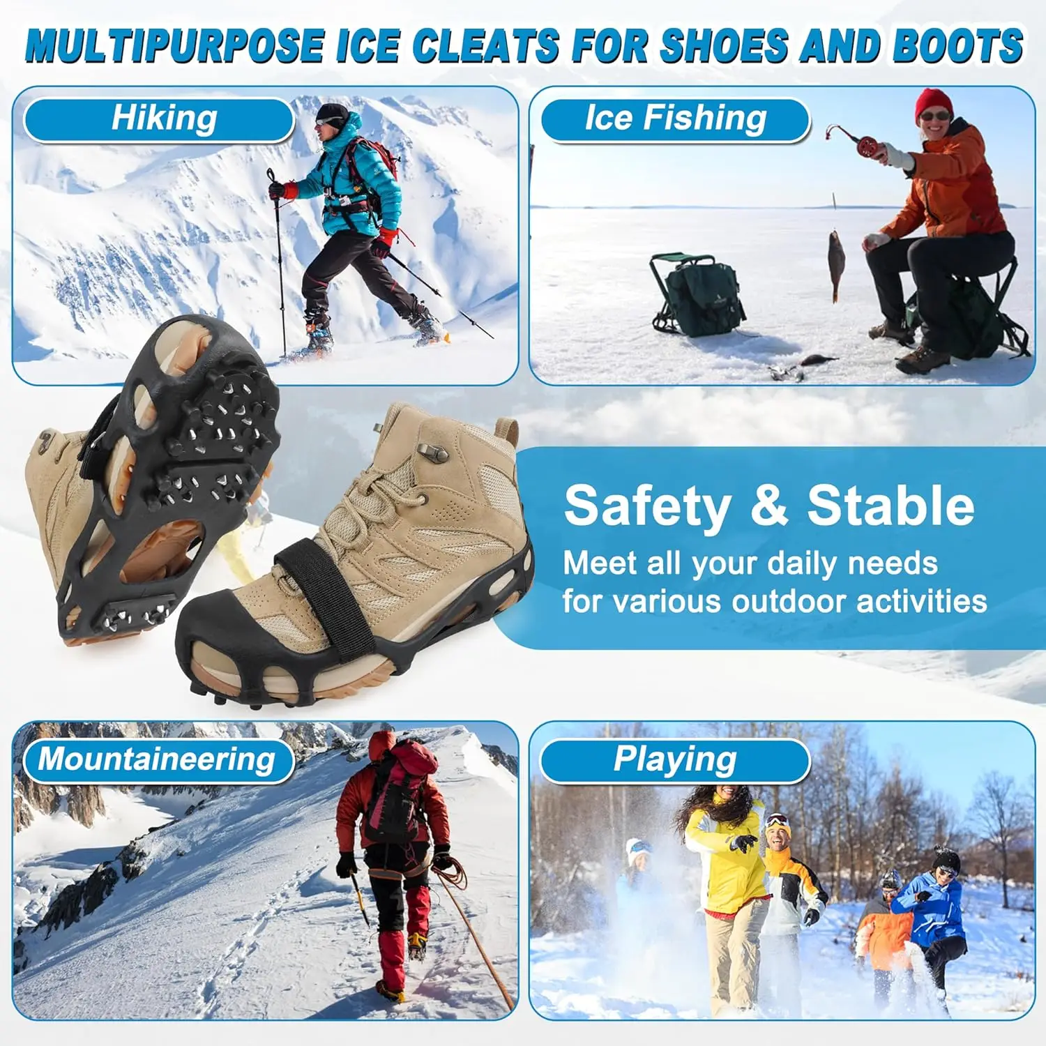Winter Accessory Non-Slip Ice Snow Traction Cleats for Jogging and Hiking Camping & Hiking Products