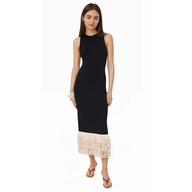 Women's Summer Pencil Knee-Length Tassel Washable Simple Knitted Tight-Fitting Dress-OEM ODM Clothing Manufacturer