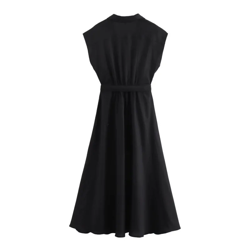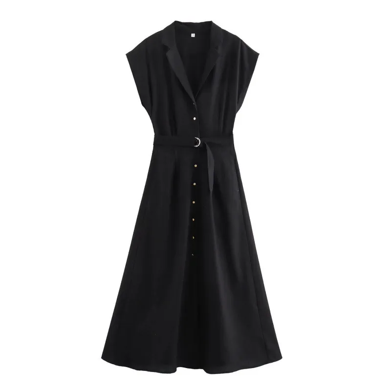 Women's Long Dress With Striped Shirt and Short Sleeves Fashionable Women's Casual Sleeveless Casual Dresses