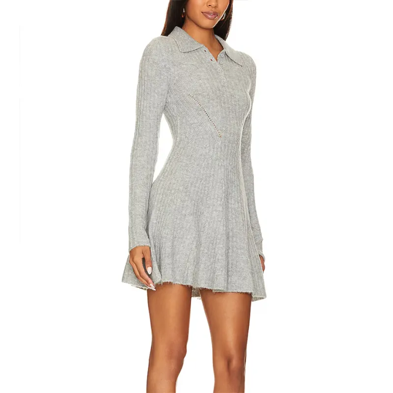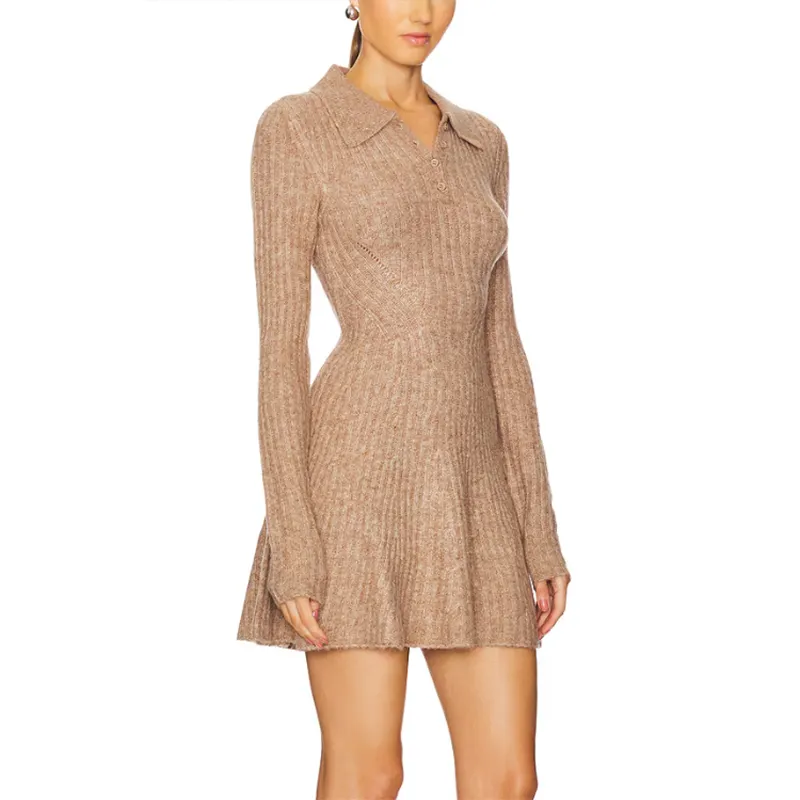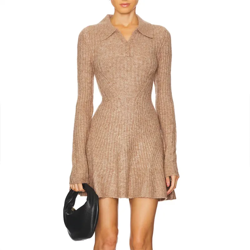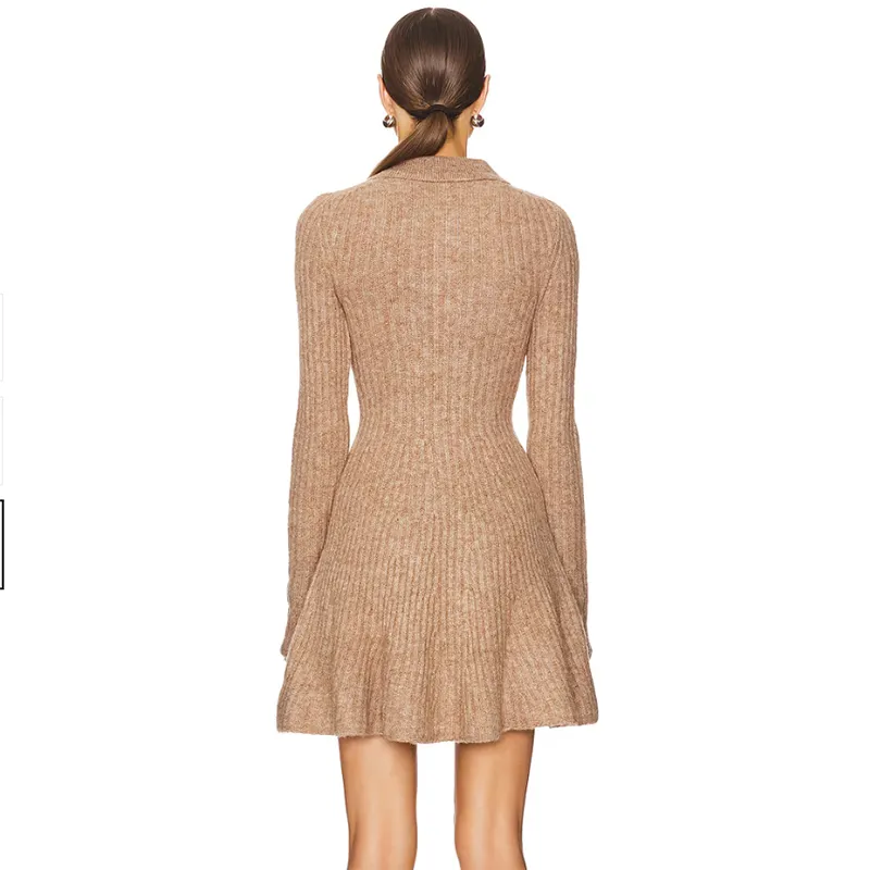 Ladies Long Sleeve Pullover Sexy Dress Back Hollow Out Custom Women Brown Cut Out Back Mini Sweater Dress
