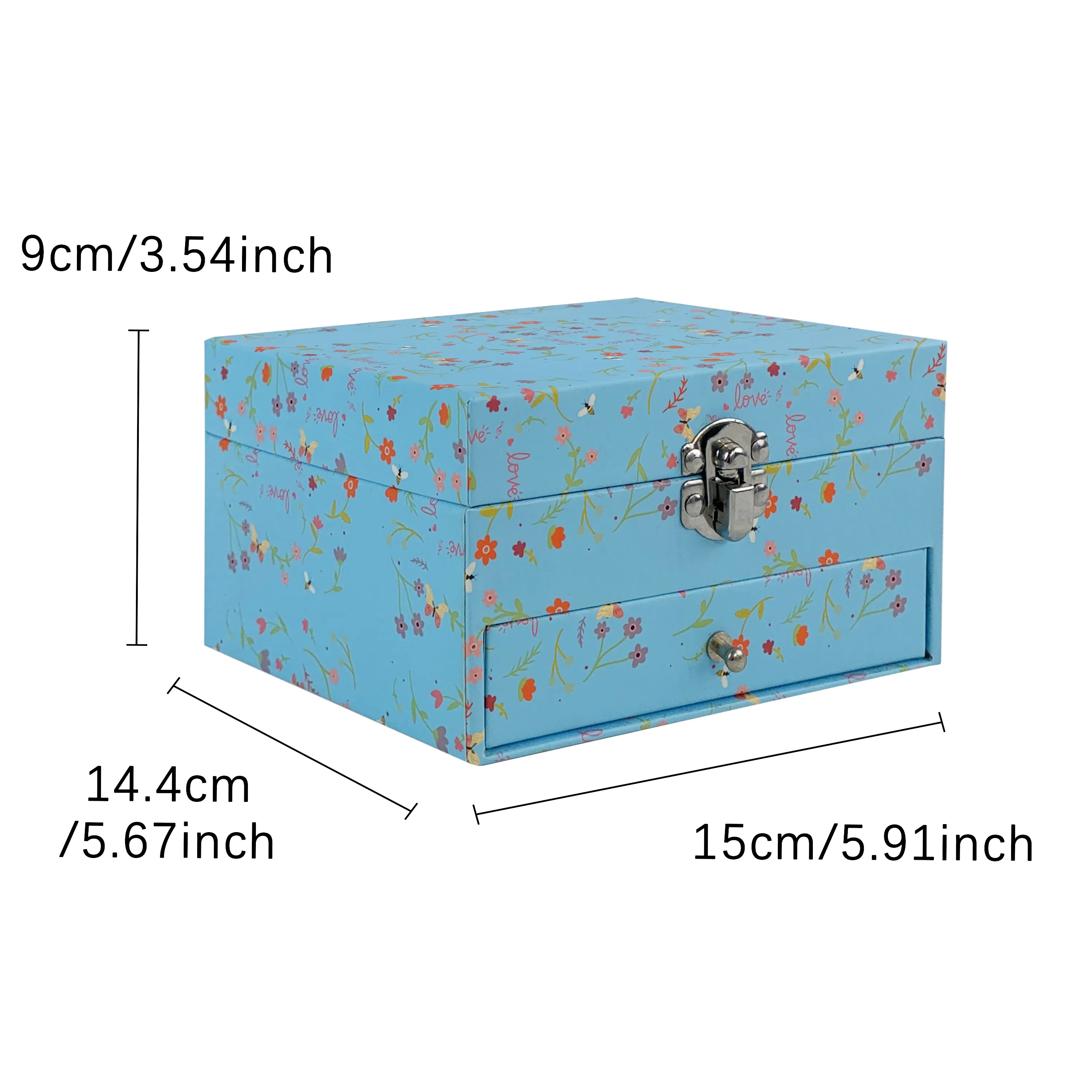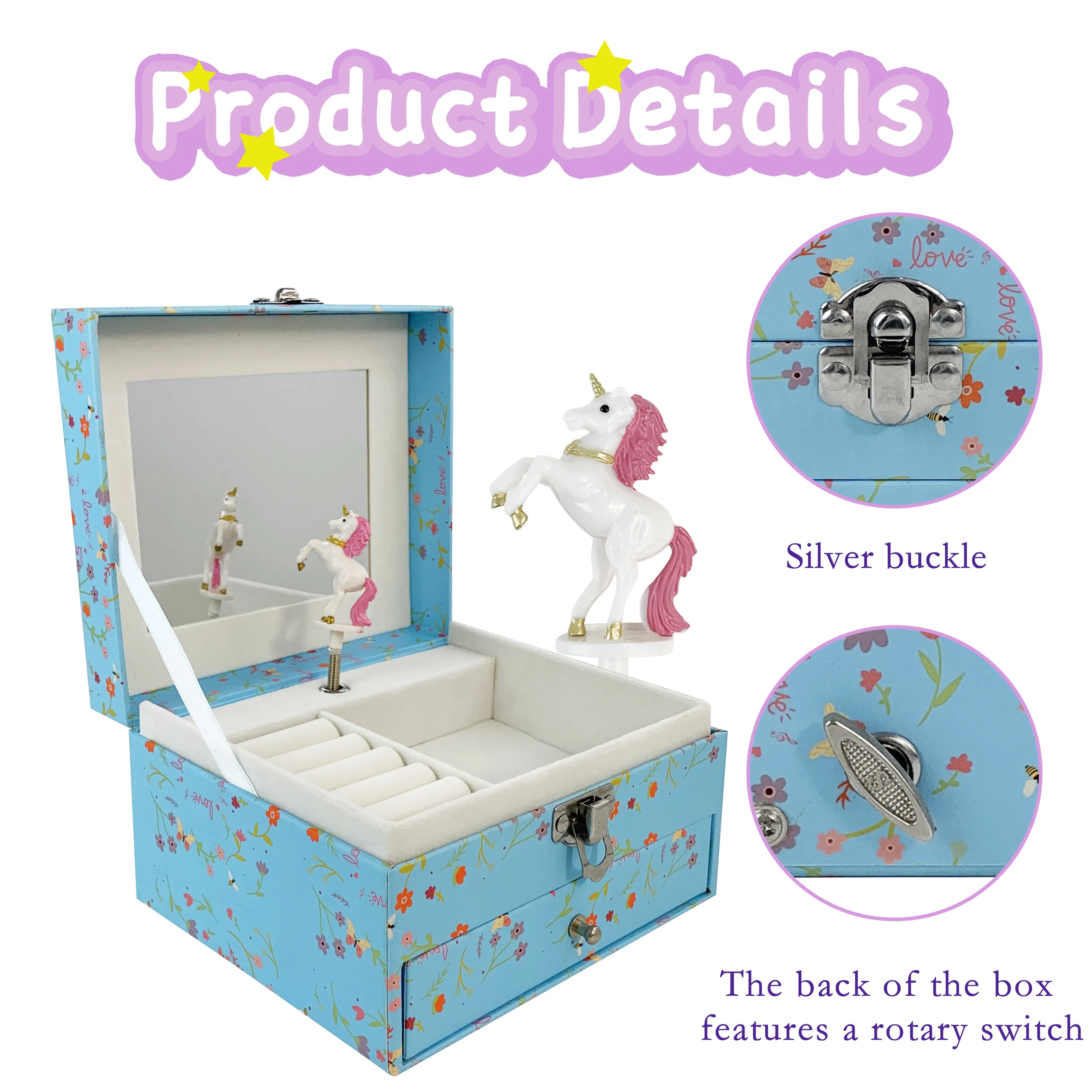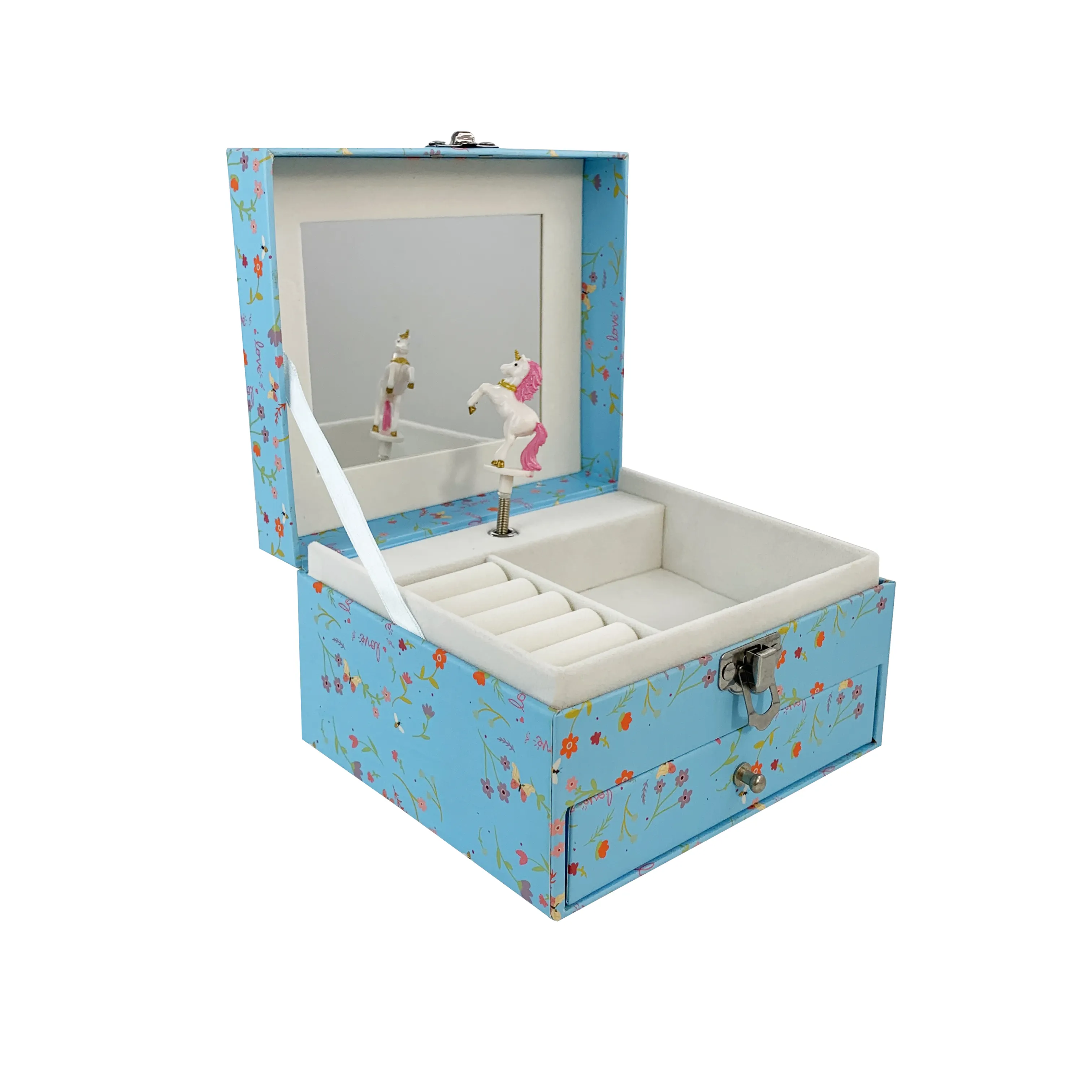 Yiyu Custom Blue Flower Carousel Music Box with Storage Function Featuring a Mirror and Drawers Home Decorationfor Gifting